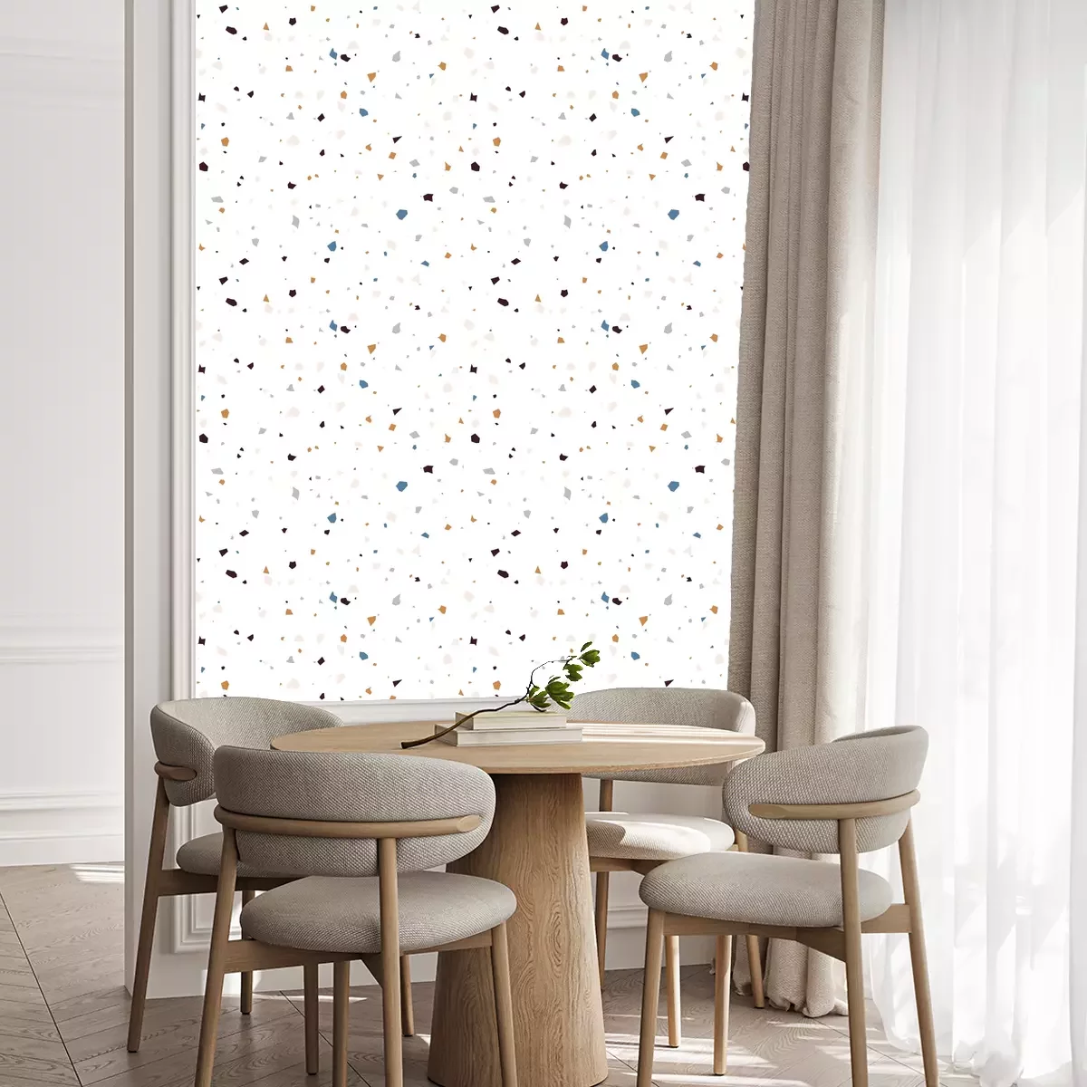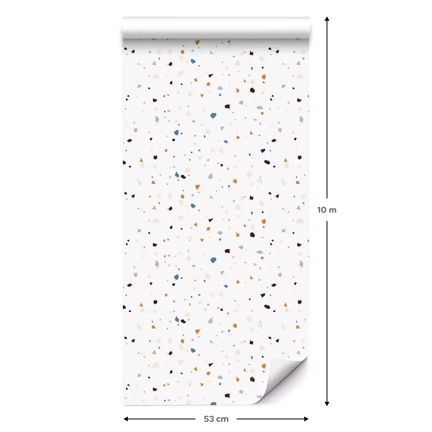 Eine Standard-Tapetenrolle hat die Maße 0,53 m x 10 m und deckt eine Wandfläche von etwa 5 m² ab.