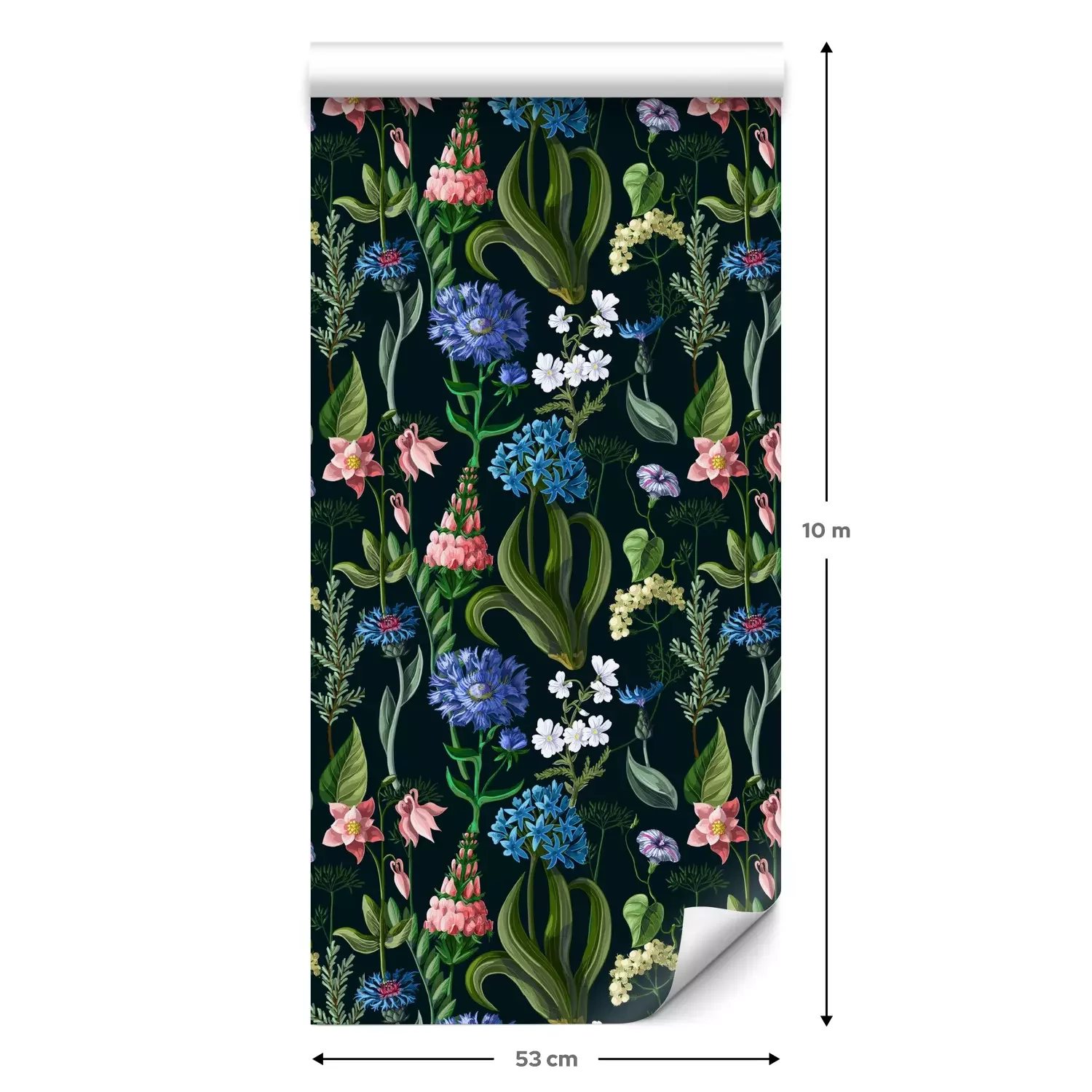 Eine Standard-Tapetenrolle hat die Maße 0,53 m x 10 m und deckt eine Wandfläche von etwa 5 m² ab.