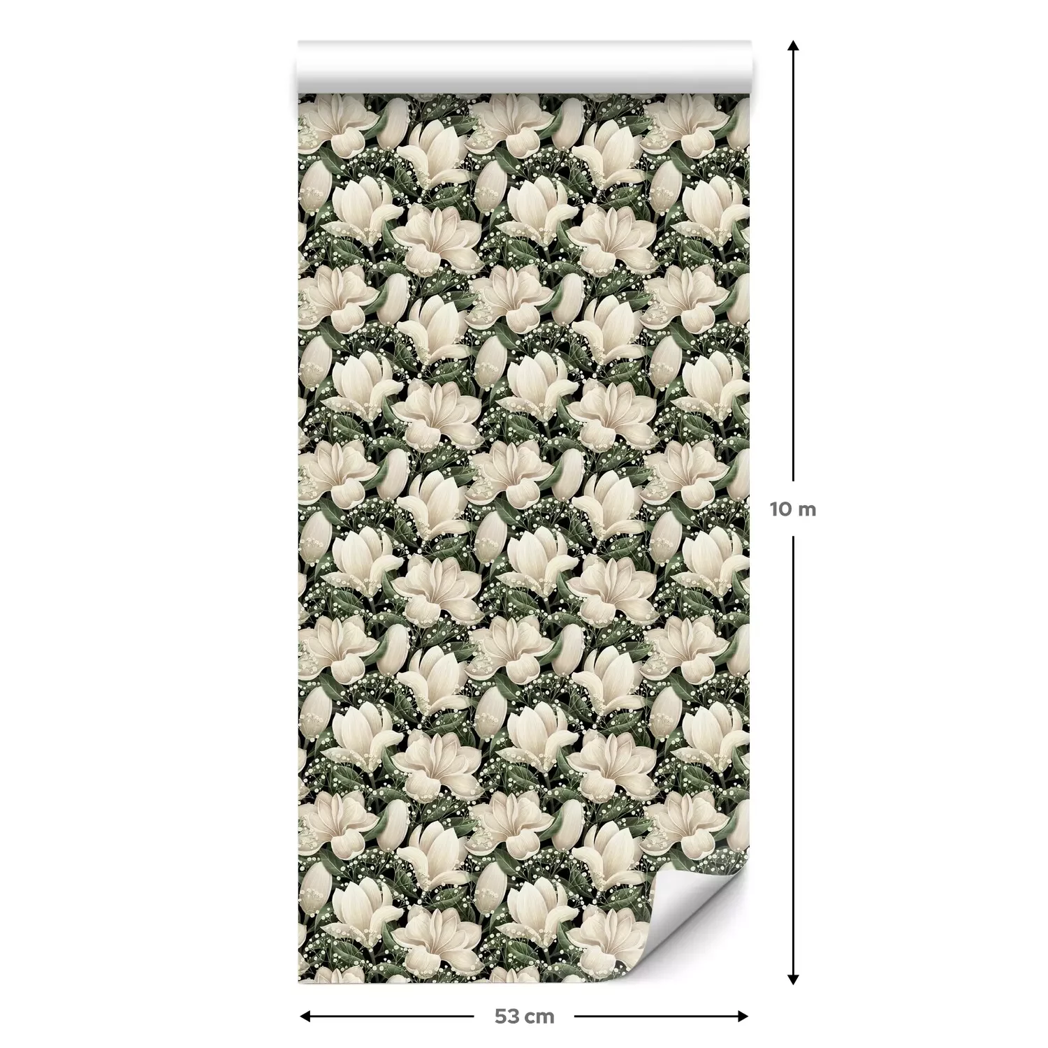 Eine Standard-Tapetenrolle hat die Maße 0,53 m x 10 m und deckt eine Wandfläche von etwa 5 m² ab.
