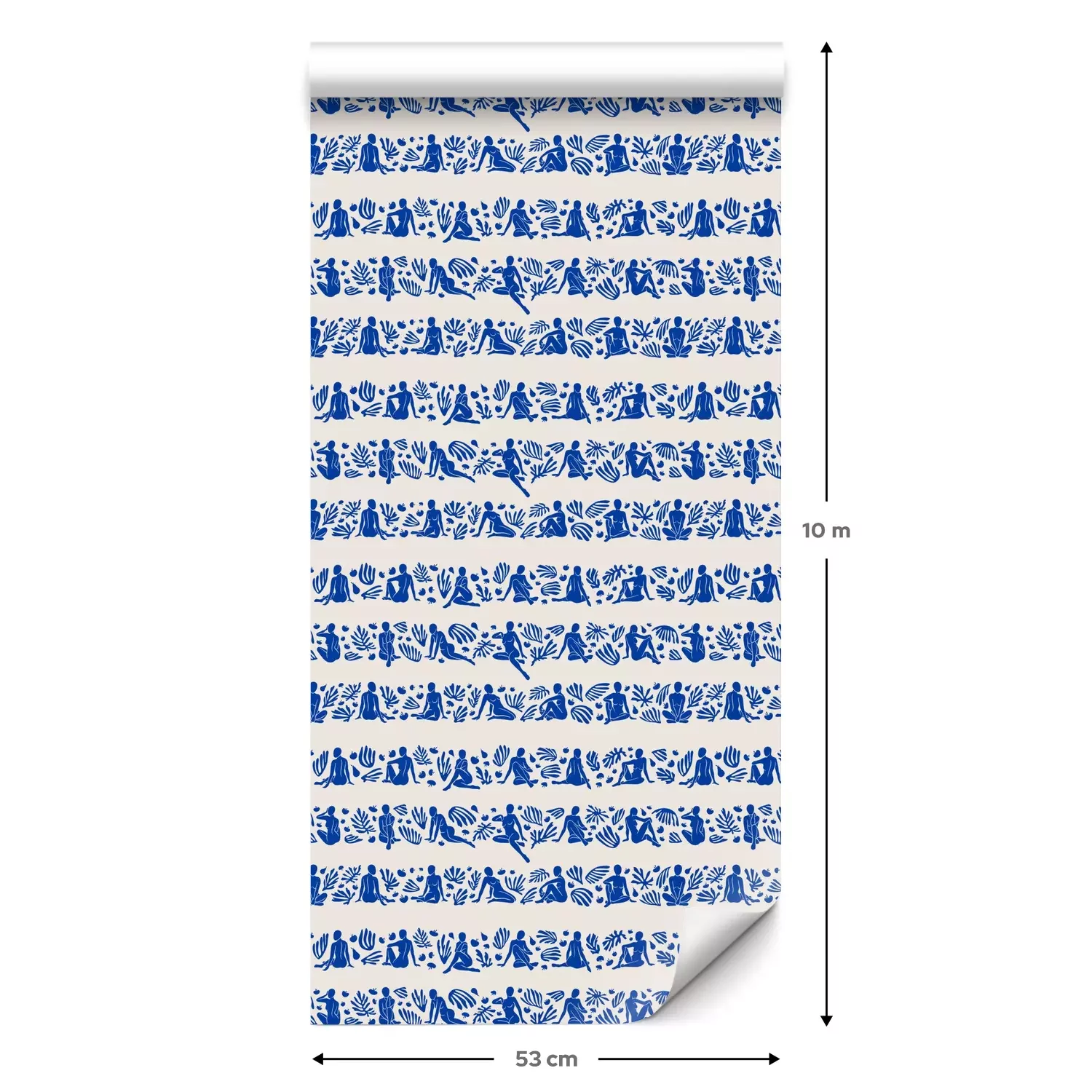 Eine Standard-Tapetenrolle hat die Maße 0,53 m x 10 m und deckt eine Wandfläche von etwa 5 m² ab.