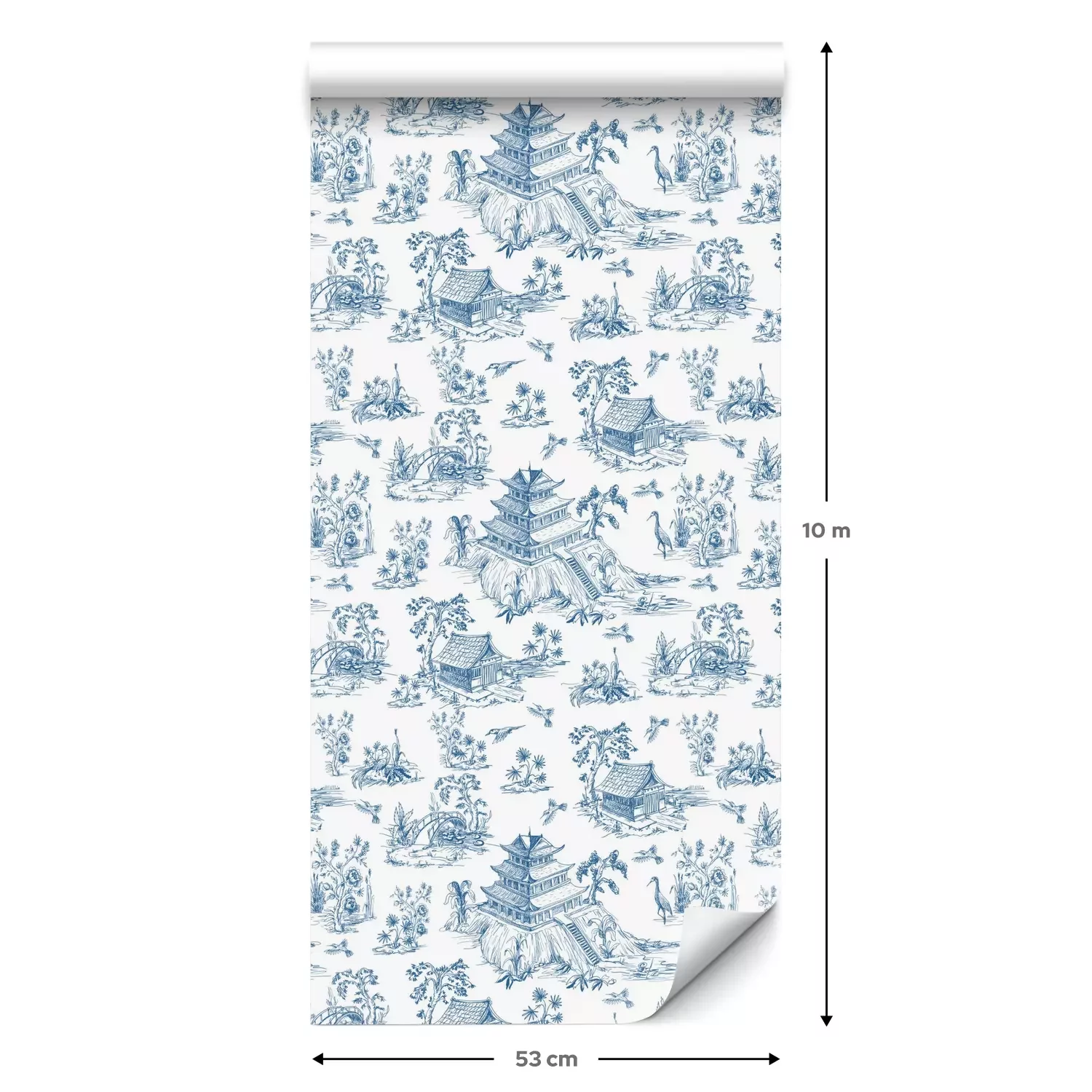 Eine Standard-Tapetenrolle hat die Maße 0,53 m x 10 m und deckt eine Wandfläche von etwa 5 m² ab.