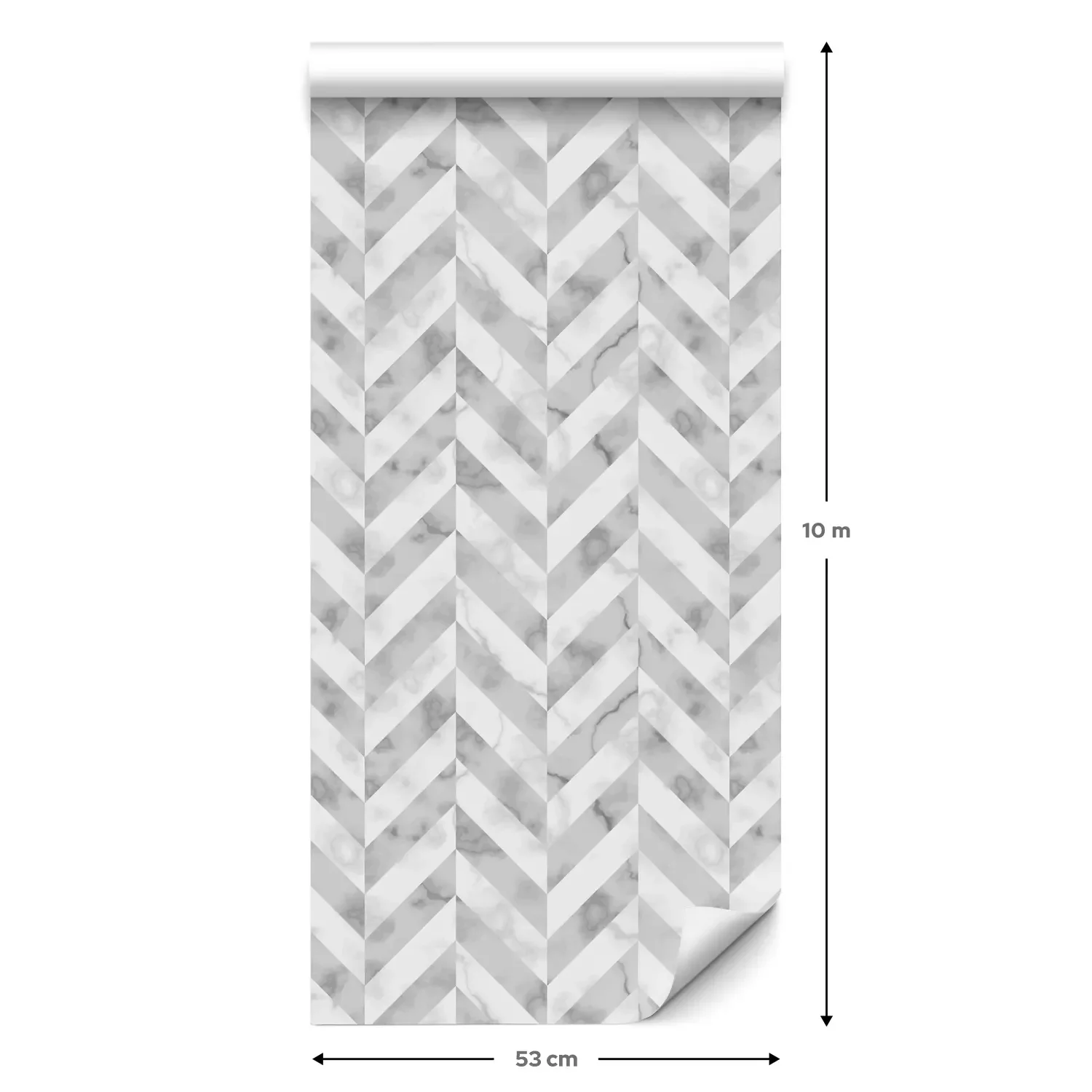 Eine Standard-Tapetenrolle hat die Maße 0,53 m x 10 m und deckt eine Wandfläche von etwa 5 m² ab.