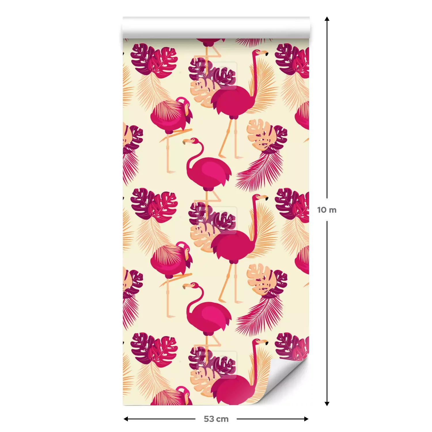 Eine Standard-Tapetenrolle hat die Maße 0,53 m x 10 m und deckt eine Wandfläche von etwa 5 m² ab.