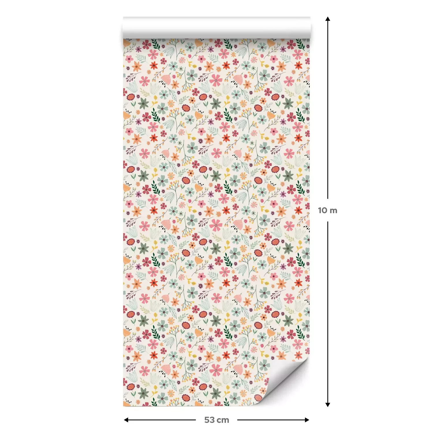 Eine Standard-Tapetenrolle hat die Maße 0,53 m x 10 m und deckt eine Wandfläche von etwa 5 m² ab.
