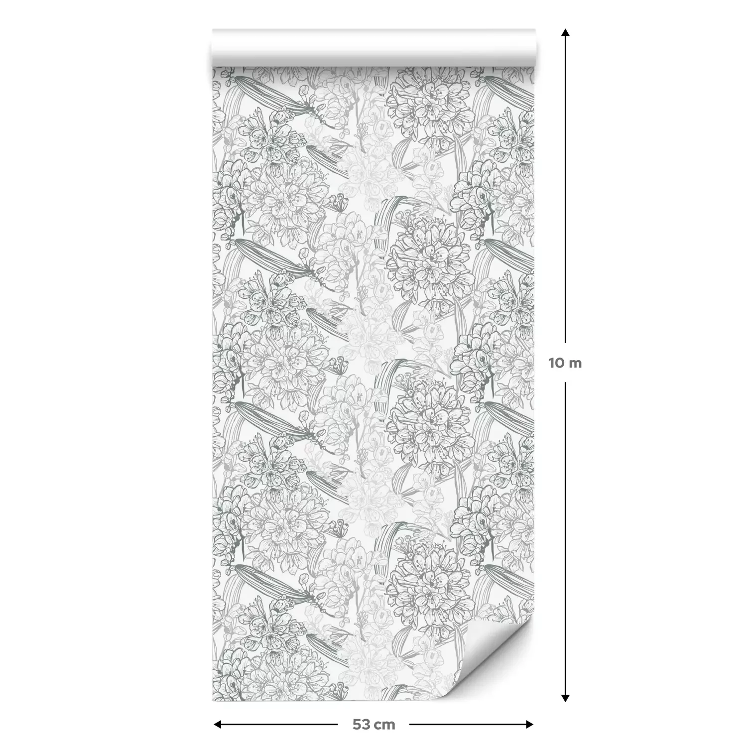 Eine Standard-Tapetenrolle hat die Maße 0,53 m x 10 m und deckt eine Wandfläche von etwa 5 m² ab.