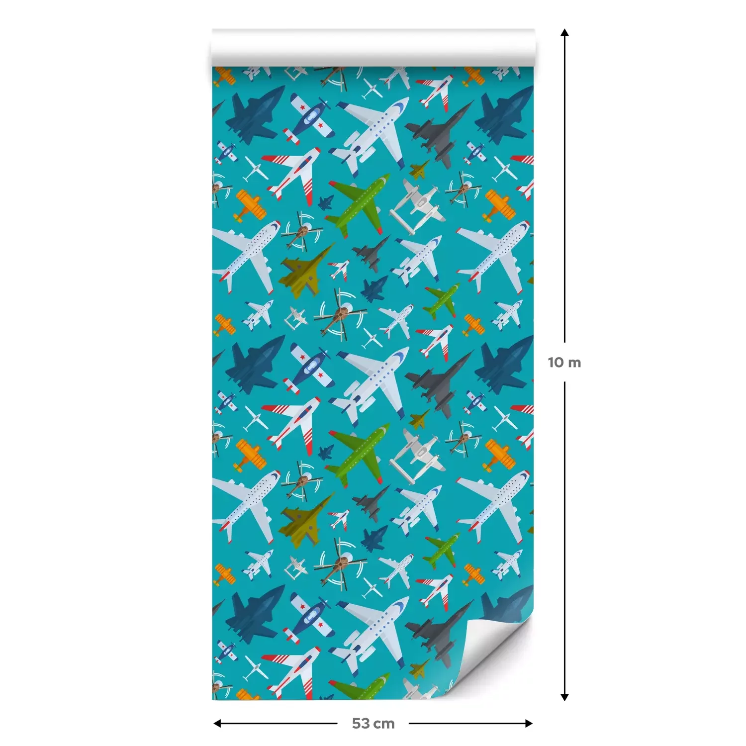 Eine Standard-Tapetenrolle hat die Maße 0,53 m x 10 m und deckt eine Wandfläche von etwa 5 m² ab.
