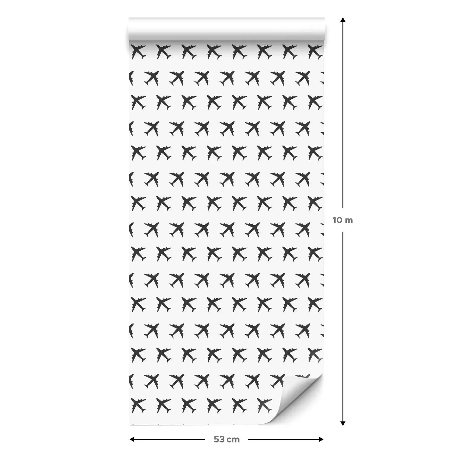 Eine Standard-Tapetenrolle hat die Maße 0,53 m x 10 m und deckt eine Wandfläche von etwa 5 m² ab.