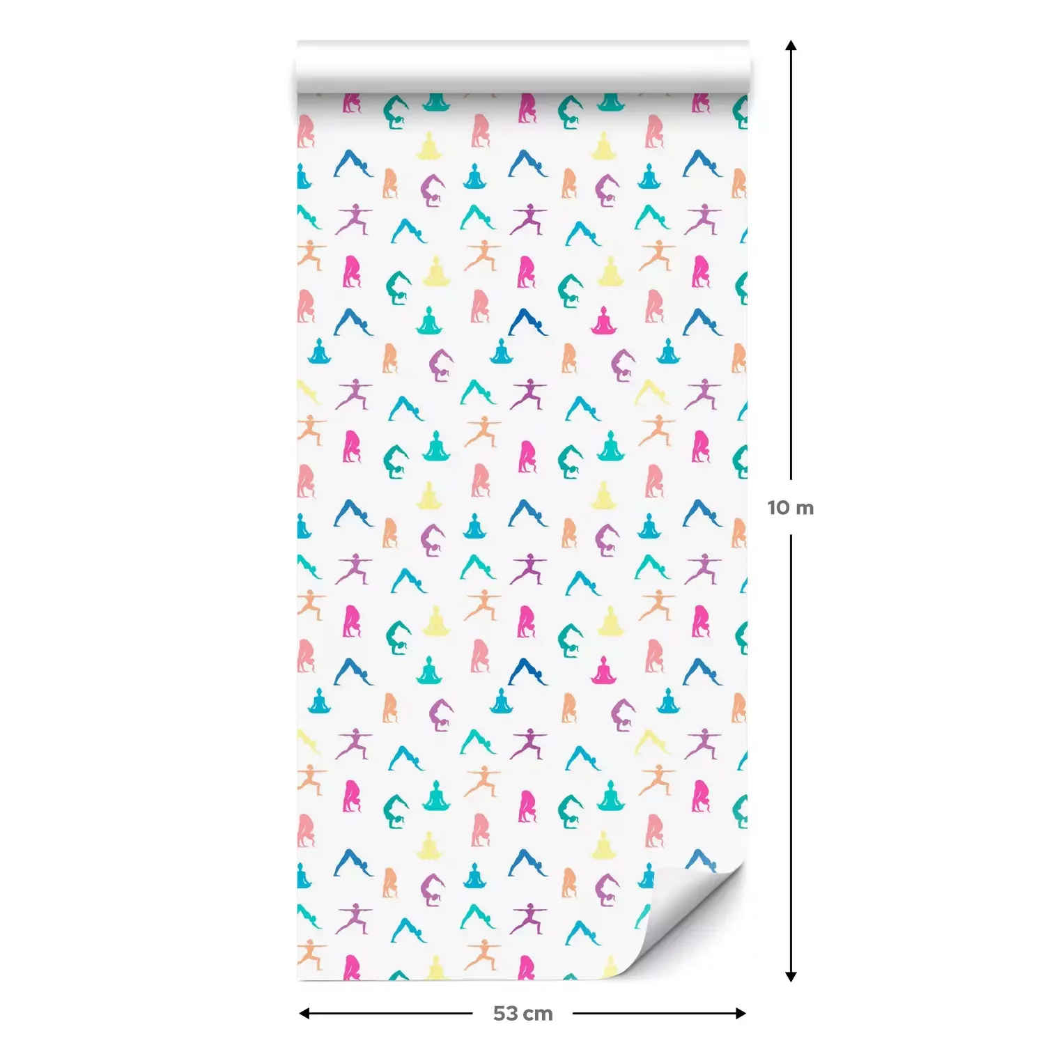 Eine Standard-Tapetenrolle hat die Maße 0,53 m x 10 m und deckt eine Wandfläche von etwa 5 m² ab.