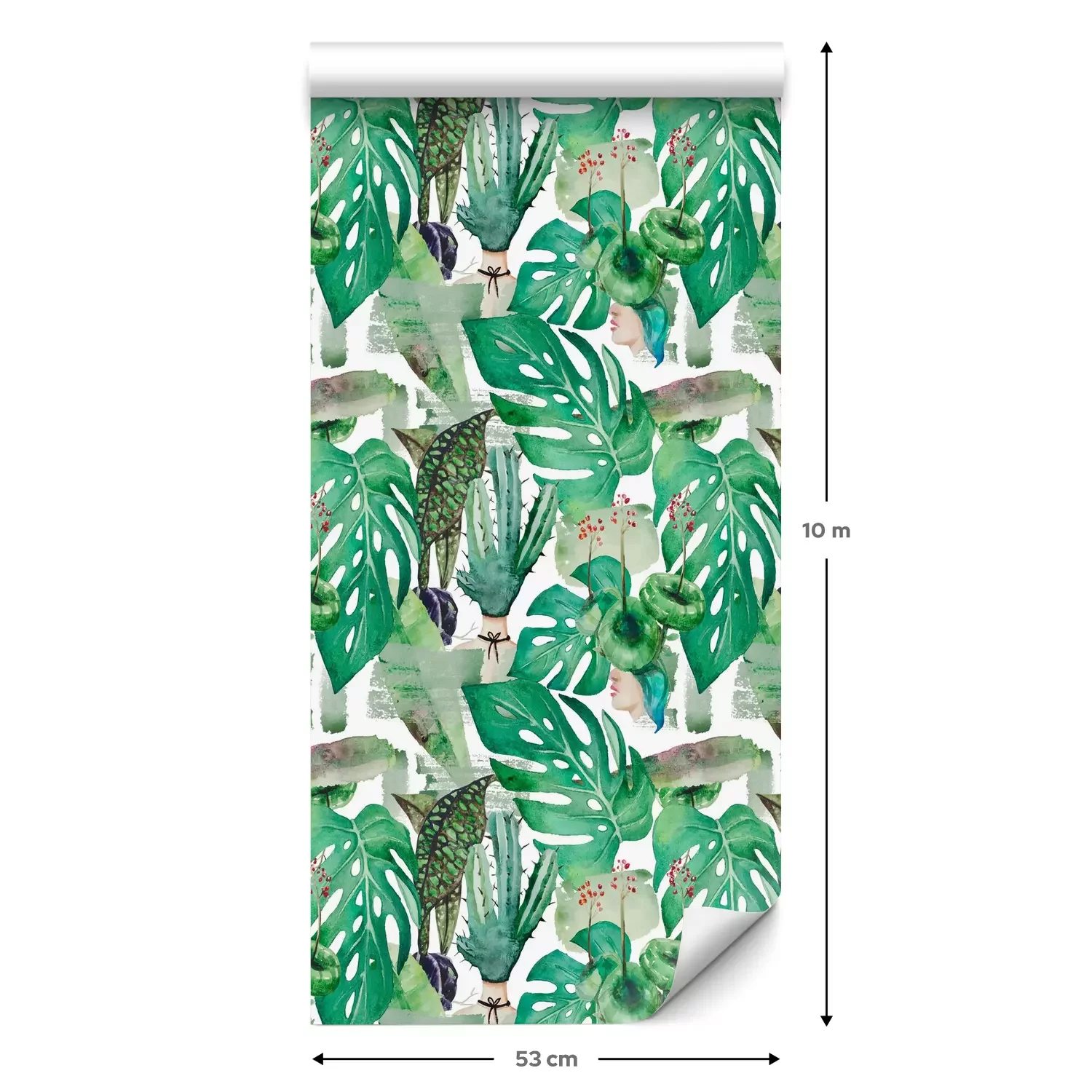 Eine Standard-Tapetenrolle hat die Maße 0,53 m x 10 m und deckt eine Wandfläche von etwa 5 m² ab.