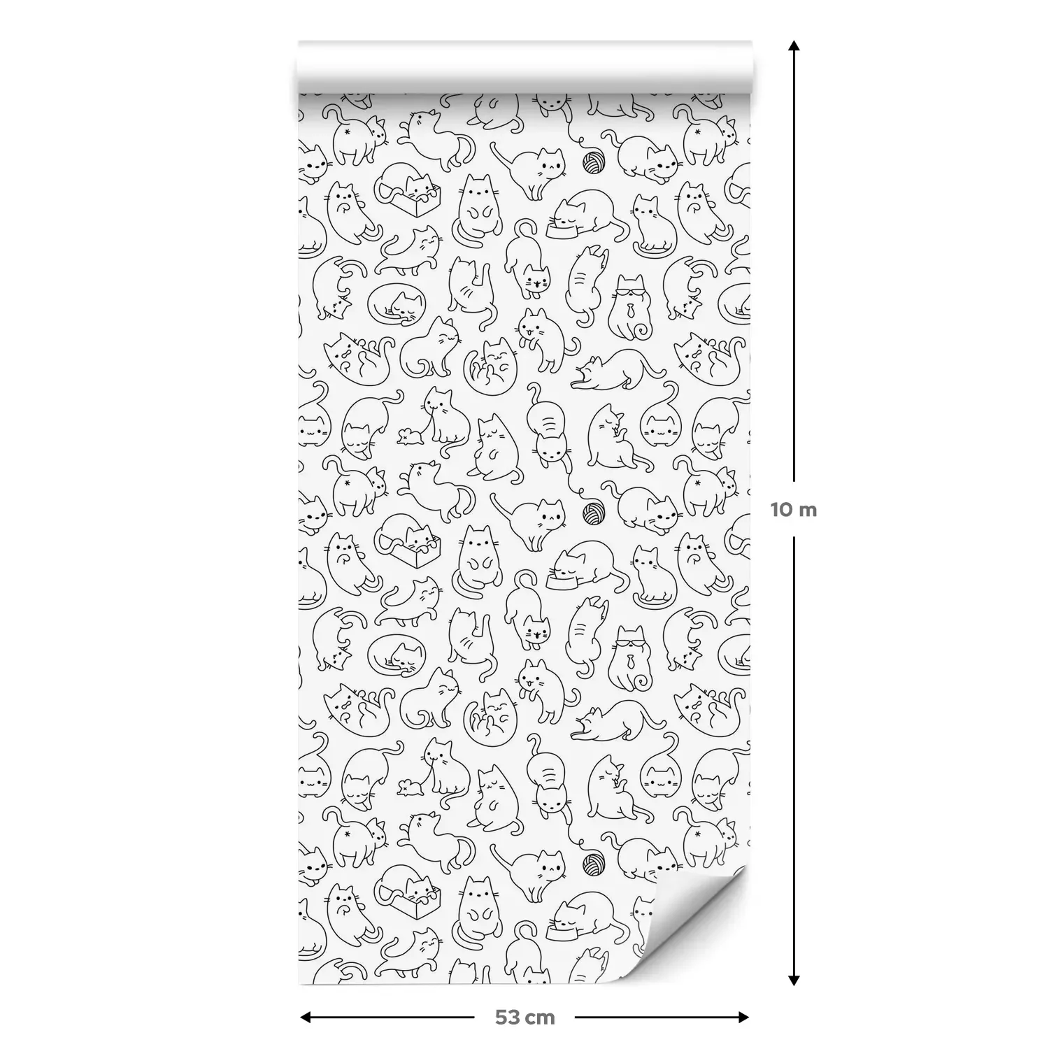 Eine Standard-Tapetenrolle hat die Maße 0,53 m x 10 m und deckt eine Wandfläche von etwa 5 m² ab.