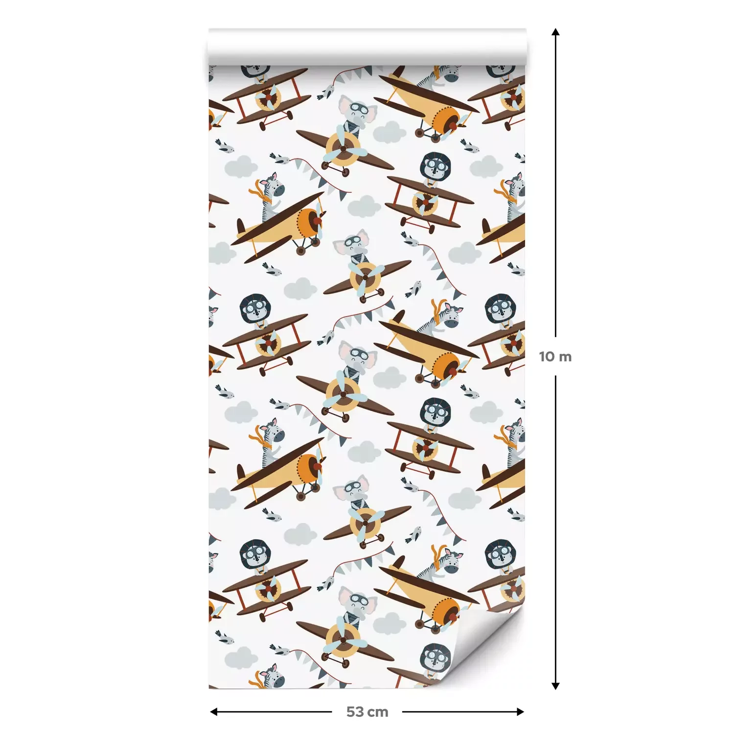 Eine Standard-Tapetenrolle hat die Maße 0,53 m x 10 m und deckt eine Wandfläche von etwa 5 m² ab.