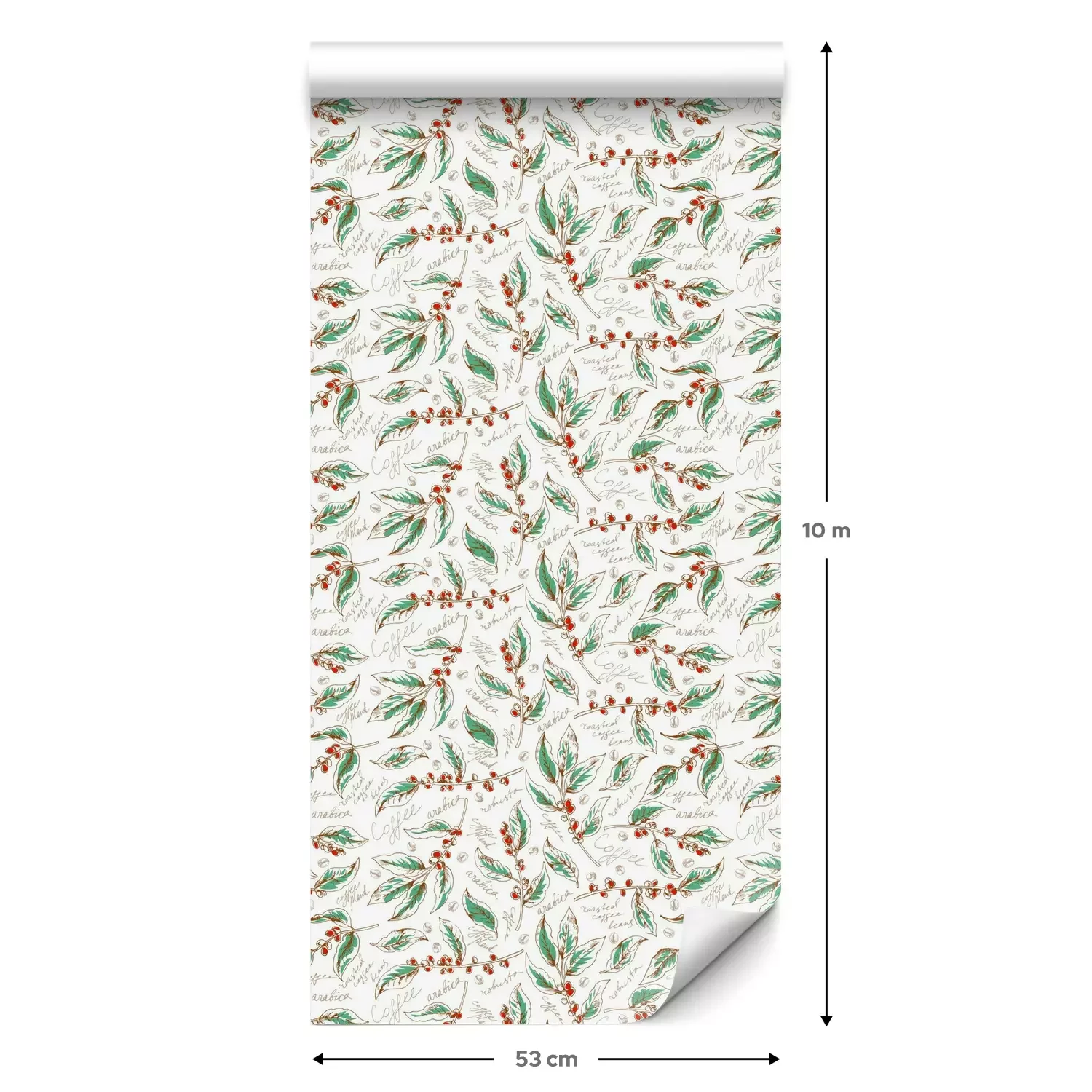 Eine Standard-Tapetenrolle hat die Maße 0,53 m x 10 m und deckt eine Wandfläche von etwa 5 m² ab.