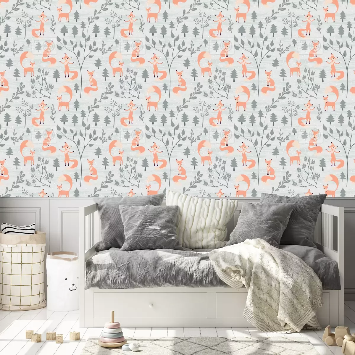 Diese entzückende Fuchs Tapete ist ein wahres Juwel für dein Interieur! Das Muster zeigt schöne, süße Füchse auf einem zarten, grauen Hintergrund, was dem Ganzen eine subtile und elegante Note verleiht. Im Zeichentrickstil gestaltet, begeistert diese Tapete Fuchs mit Leichtigkeit und Bewegung. Das Fuchsmotiv ist äußerst charmant und reizvoll. Die Füchse sind in verschiedenen Posen dargestellt, was ein dynamisches Bild ergibt. Ihre schöne Farbe Orange in Kombination mit dem flauschigen Schwanz verleiht ihnen einen bezaubernden und augenfreundlichen Charme. Die Füchse sind von Bäumen umgeben, die hier in Grautönen dargestellt sind, als wären sie mit Schnee bedeckt. Diese zarte Farbgebung verleiht der Tapete Fuchs ein Gefühl von Ruhe und Harmonie. Die Fuchs Tapete passt perfekt zum Kinderzimmer im Boho-Stil. Ihre natürlichen, sanften Farben bringen Wärme und Gemütlichkeit in den Raum. Die Tapete harmoniert wunderbar mit Accessoires in natürlichen Nuancen, insbesondere mit Holzelementen, die dem Interieur eine natürliche Schönheit verleihen. Diese Tapete Fuchs zieht nicht nur durch ihren Charme alle Blicke auf sich, sondern bringt auch positive Energie in den Raum. Der Fuchs symbolisiert Geschicklichkeit, Intuition und Mut, was diese Tapete zu einem inspirierenden Dekorationselement macht. Jeder Blick auf diese entzückenden Wesen an der Wand wird an die innere Stärke und die Fähigkeit, Hindernisse zu überwinden, erinnern. Das Fuchsmuster auf grauem Hintergrund schafft eine subtile Verbindung von Kontrasten, die dem Interieur Eleganz und Stil verleiht. Die Grautöne des Hintergrunds sorgen für Ruhe und Ausgeglichenheit und schaffen eine Atmosphäre der Entspannung und Besinnung. Diese Fuchstapete ist eine ideale Wahl nicht nur für ein Kinderzimmer, sondern auch für ein Schlafzimmer oder ein Wohnzimmer, wo sie einen gemütlichen Raum zum Ausruhen und Regenerieren zaubert. Wenn du dich für diese Tapete entscheidest, bekommst du nicht nur eine hohe Verarbeitungsqualität und Langlebigkeit, sondern auch ein einzigartiges Design, das deinem Interieur Charakter verleiht. Jedes Detail, wie der flauschige Fuchsschwanz oder die zart mit Schnee bedeckten Bäume, wurde sorgfältig entworfen, um unvergessliche visuelle Eindrücke zu garantieren. Diese Tapete Fuchs ist ein Kunstwerk, dessen Einzigartigkeit jeden Raum belebt. Warte nicht länger und bringe den Zauber der Natur und den Charme dieser süßen Füchse in dein Interieur. Diese Fuchs Tapete ist nicht nur eine Dekoration, sondern auch eine Investition in die Schönheit und Harmonie in deinem Zuhause. Als Blickfang und Einladung zum Bewundern wird diese Tapete mit Fuchsmotiv zu einem unverzichtbaren Element deines Interieurs, das dir mit Sicherheit viel Freude und Inspiration bringt.