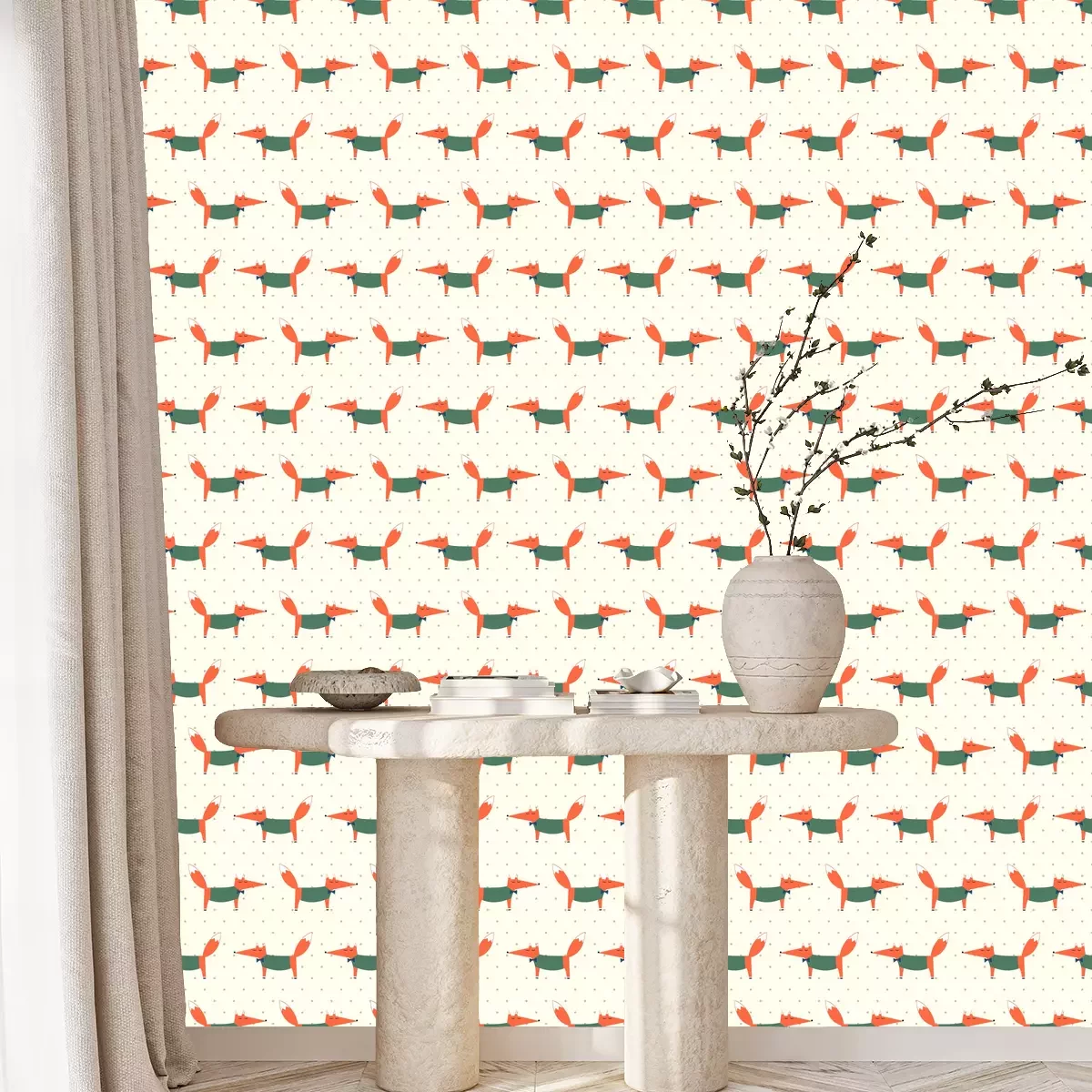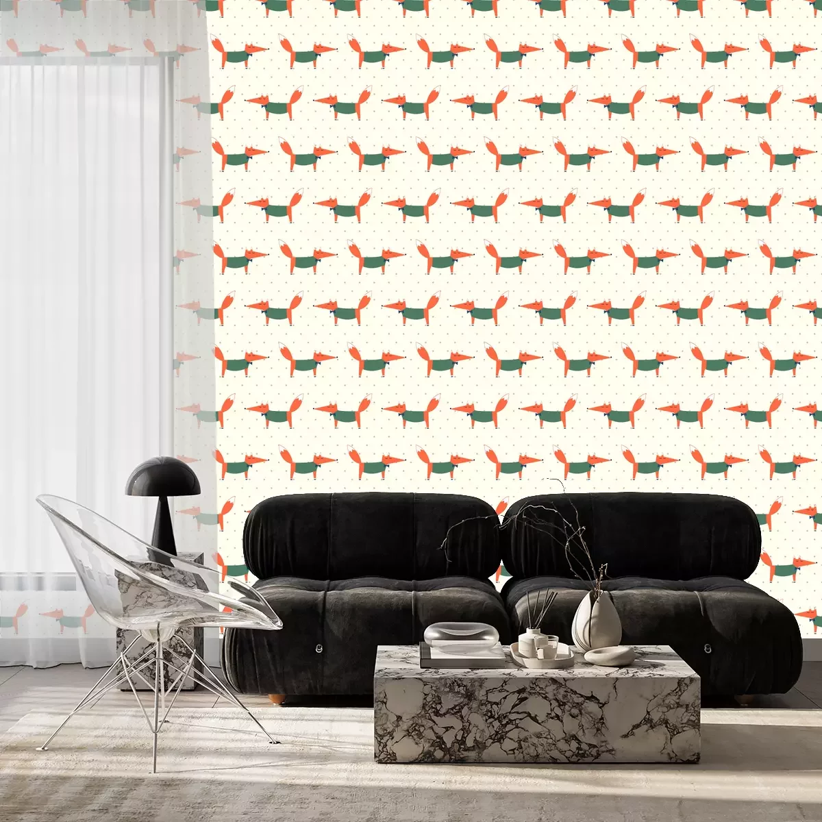 Füchse gehören zu den entzückendsten Kreaturen, die man in der Natur antreffen kann, und nun können wir ihre Anmut auch an der Wand genießen. Eine Tapete – Fuchs, der einen Pullover mit einer Fliege um den Hals trägt – gewinnt dadurch zusätzliche Süße und Charme. Das kindliche Muster auf hellem Hintergrund passt perfekt zur Gestaltung von Kinderzimmern und schafft einen Raum, der sowohl lustig als auch kinderfreundlich ist. Die vorgestellte Fuchstapete, auf der diese Tiere abwechselnd nach links und rechts ausgerichtet sind und Reihenmuster bilden, verleiht dem Raum Dynamik und Bewegung. Dies ist eine großartige Option für Kinder, die gerne Inspiration für Spiele in ihrer unmittelbaren Umgebung suchen. Die Phantasie der Kinder kann durch die Betrachtung dieses entzückenden Tieres, des Fuchses, angeregt werden. Diese Kindertapete Fuchs bietet eine Vielzahl von Gestaltungsmöglichkeiten und lässt sich problemlos mit verschiedenen Stilen kombinieren. Ihr heller Hintergrund macht sie vielseitig und leicht anpassbar. Sie können passende Accessoires wie Kissen oder pastellfarbene Vorhänge damit einfach kombinieren. Sie können sie mit dem modernen, skandinavischen Stil komponieren, der Einfachheit und Natürlichkeit betont, indem Sie helle Holzmöbel und zarte Accessoires in erdigen Farben in den Raum integrieren. Es gibt wohl kein besseres Motiv für ein Kinderzimmer als den Fuchs! Tapete sieht auch gut vor dunklen Holzmöbeln aus und bildet einen sanften und für das Auge angenehmen Kontrast. Wenn Sie jedoch eher klassische Innenräume bevorzugen, ist die Tapete Fuchs eine hervorragende Ergänzung zum traditionellen Stil. Sie können dekorative Elemente wie vergoldete Rahmen für Bilder oder Spiegel hinzufügen. Wenn Sie jedoch den eklektischen Stil bevorzugen, kann die Fuchs Tapete ein großartiger Mittelpunkt sein, der der gesamten Umgebung Charakter verleiht. Sie können sie mit verschiedenen Farben und Mustern kombinieren, um originelle Kombinationen zu schaffen. Fügen Sie farbenfrohe Kissen, Teppiche oder Vorhänge hinzu, um noch mehr Energie in den Raum zu bringen. Die Vorteile dieser Dekoration sind unbestreitbar. Die Fuchstapete verleiht dem Raum Freude und Charme und schafft eine angenehme und fröhliche Umgebung für Kinder, die zum Lernen und Spielen anregt.