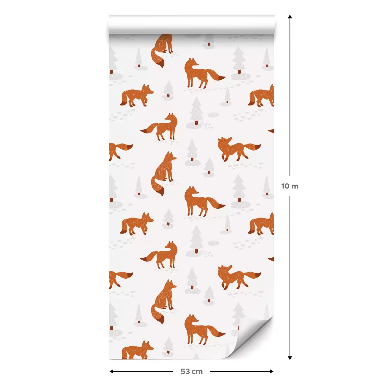 Eine Standard-Tapetenrolle hat die Maße 0,53 m x 10 m und deckt eine Wandfläche von etwa 5 m² ab.