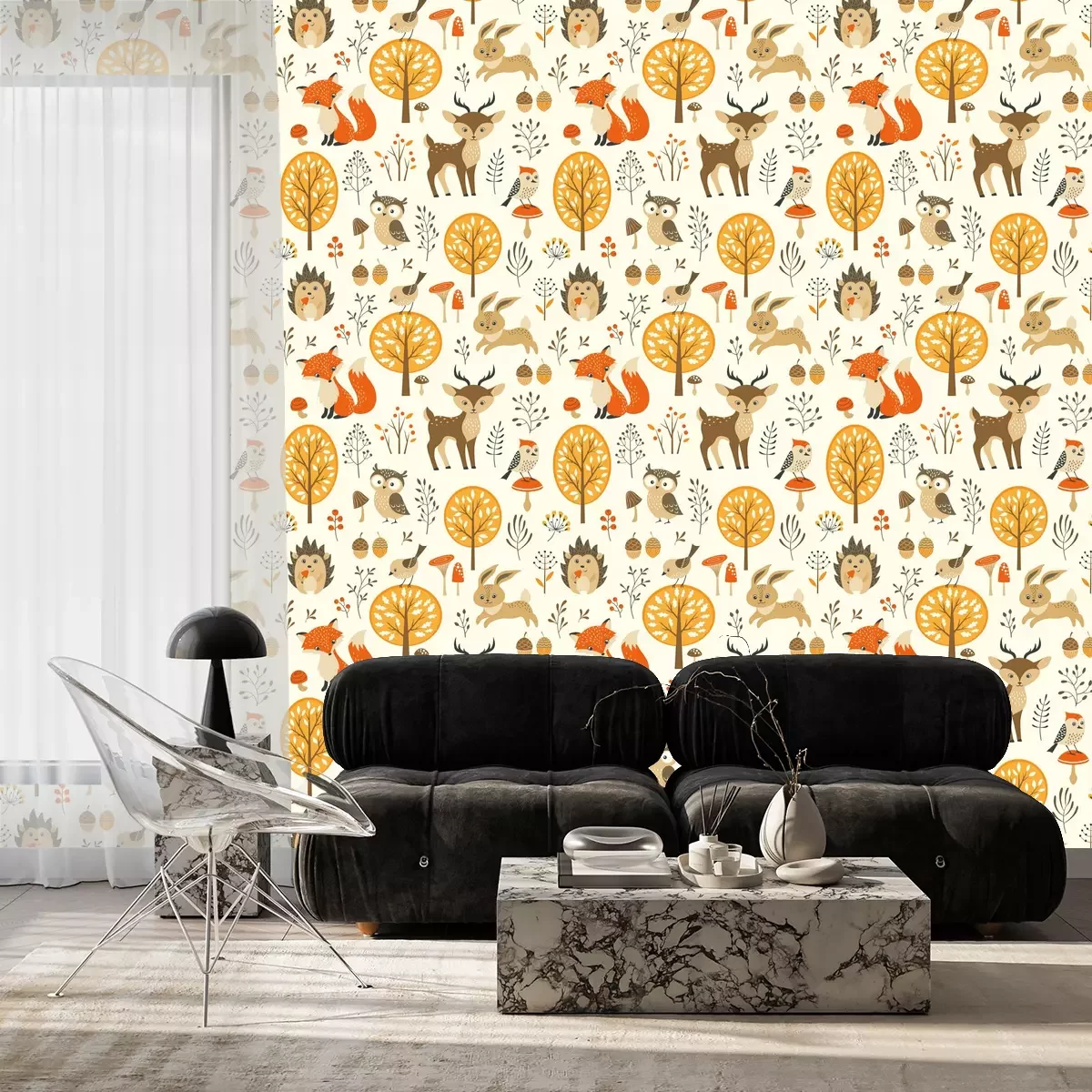 Tapete Für Kinder wilde Tiere im Herbstwald