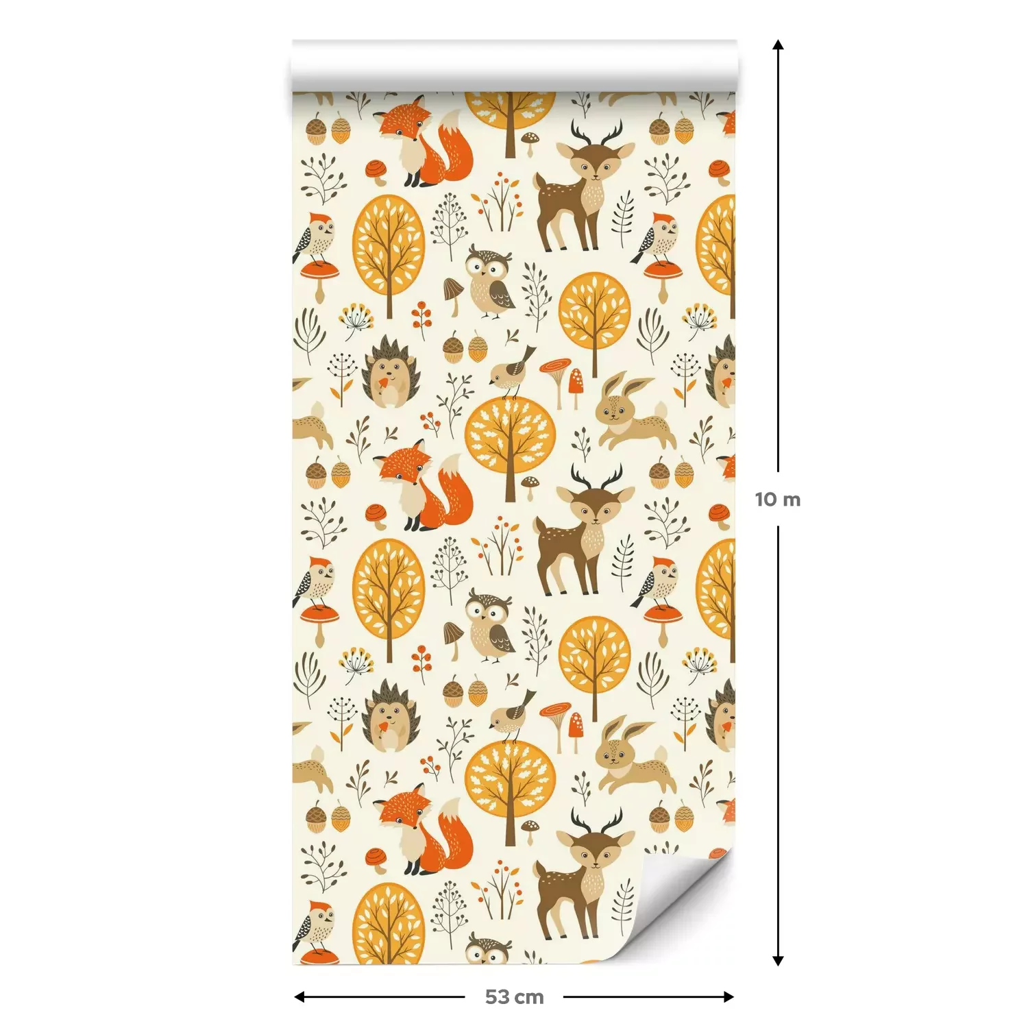 Eine Standard-Tapetenrolle hat die Maße 0,53 m x 10 m und deckt eine Wandfläche von etwa 5 m² ab.