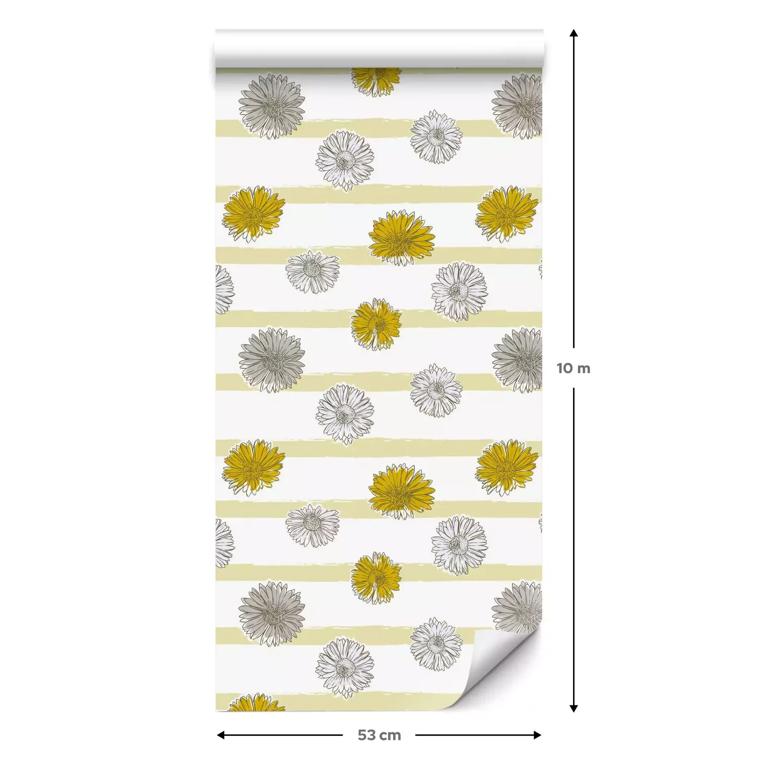 Eine Standard-Tapetenrolle hat die Maße 0,53 m x 10 m und deckt eine Wandfläche von etwa 5 m² ab.