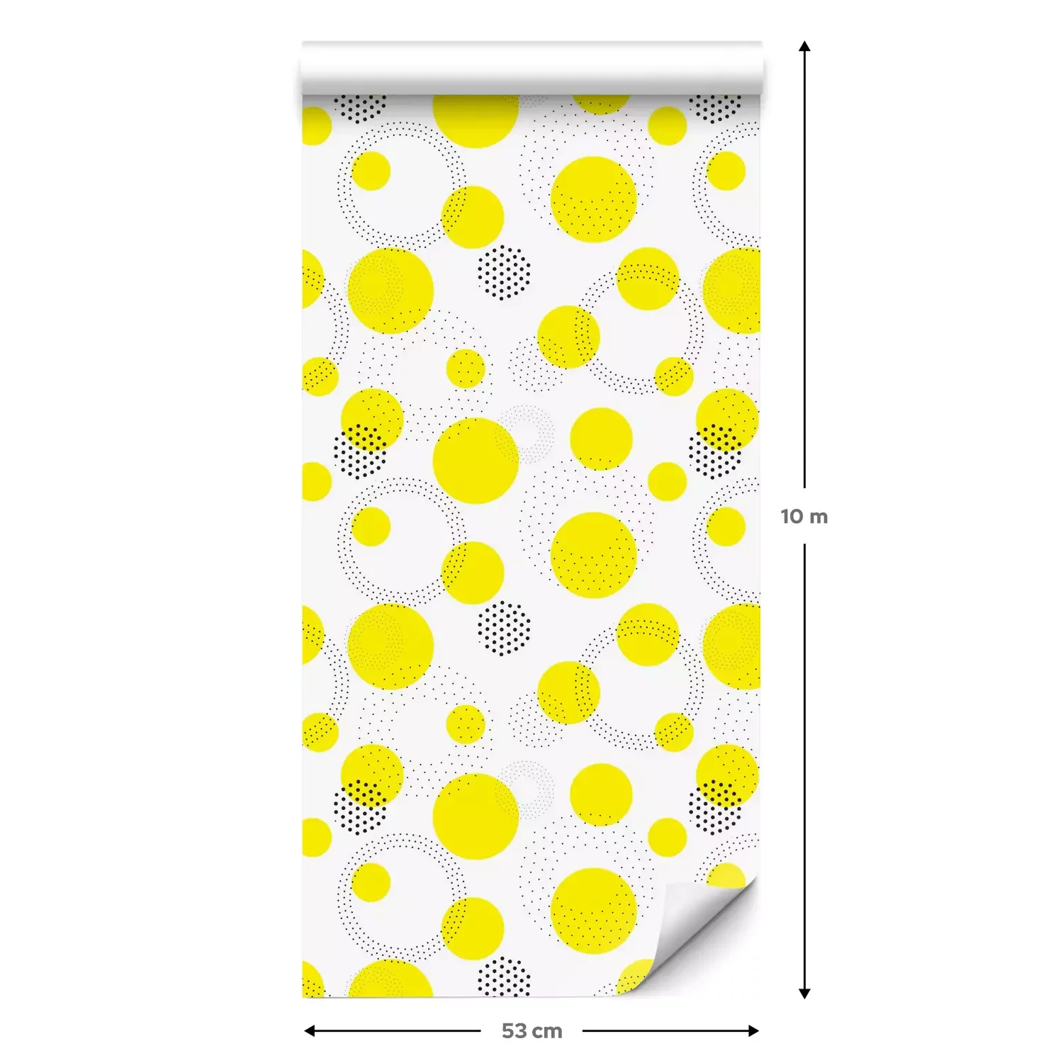 Eine Standard-Tapetenrolle hat die Maße 0,53 m x 10 m und deckt eine Wandfläche von etwa 5 m² ab.