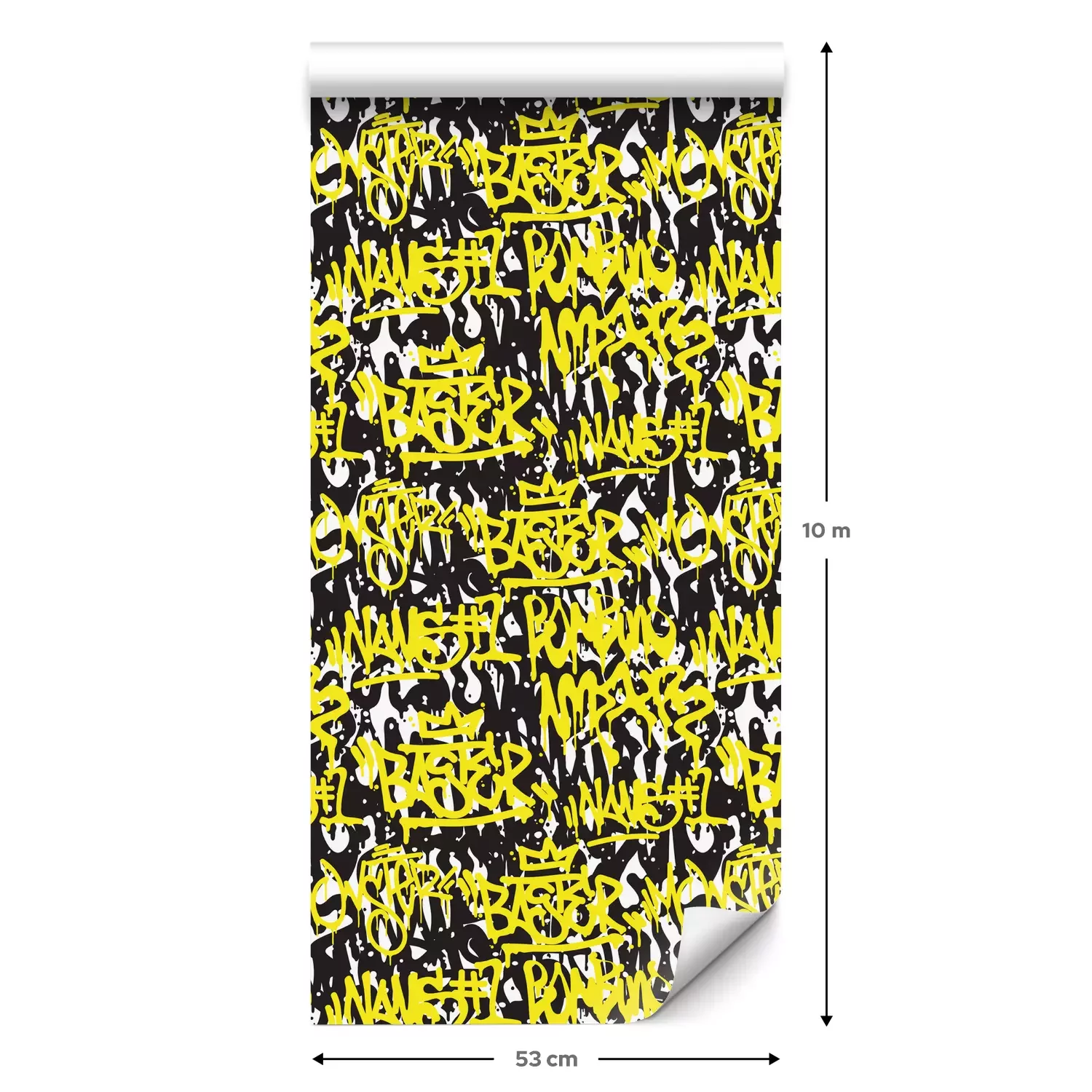 Eine Standard-Tapetenrolle hat die Maße 0,53 m x 10 m und deckt eine Wandfläche von etwa 5 m² ab.
