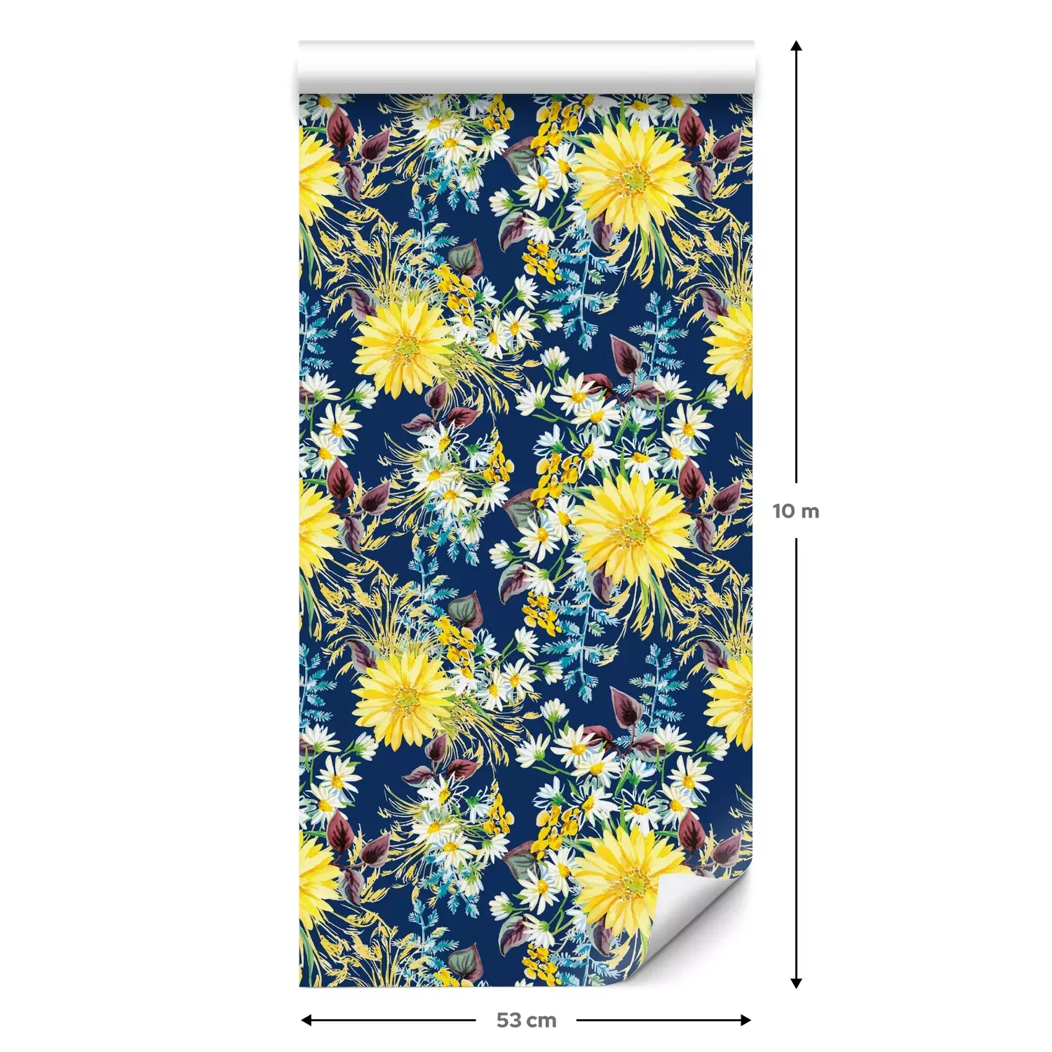 Eine Standard-Tapetenrolle hat die Maße 0,53 m x 10 m und deckt eine Wandfläche von etwa 5 m² ab.