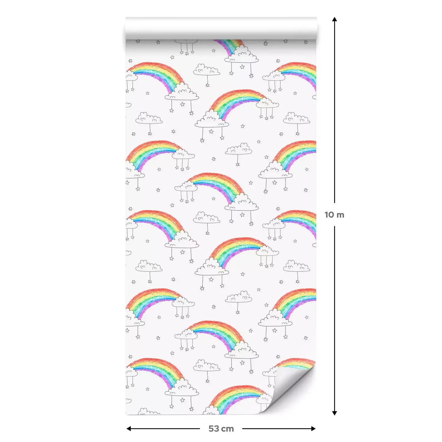 Eine Standard-Tapetenrolle hat die Maße 0,53 m x 10 m und deckt eine Wandfläche von etwa 5 m² ab.