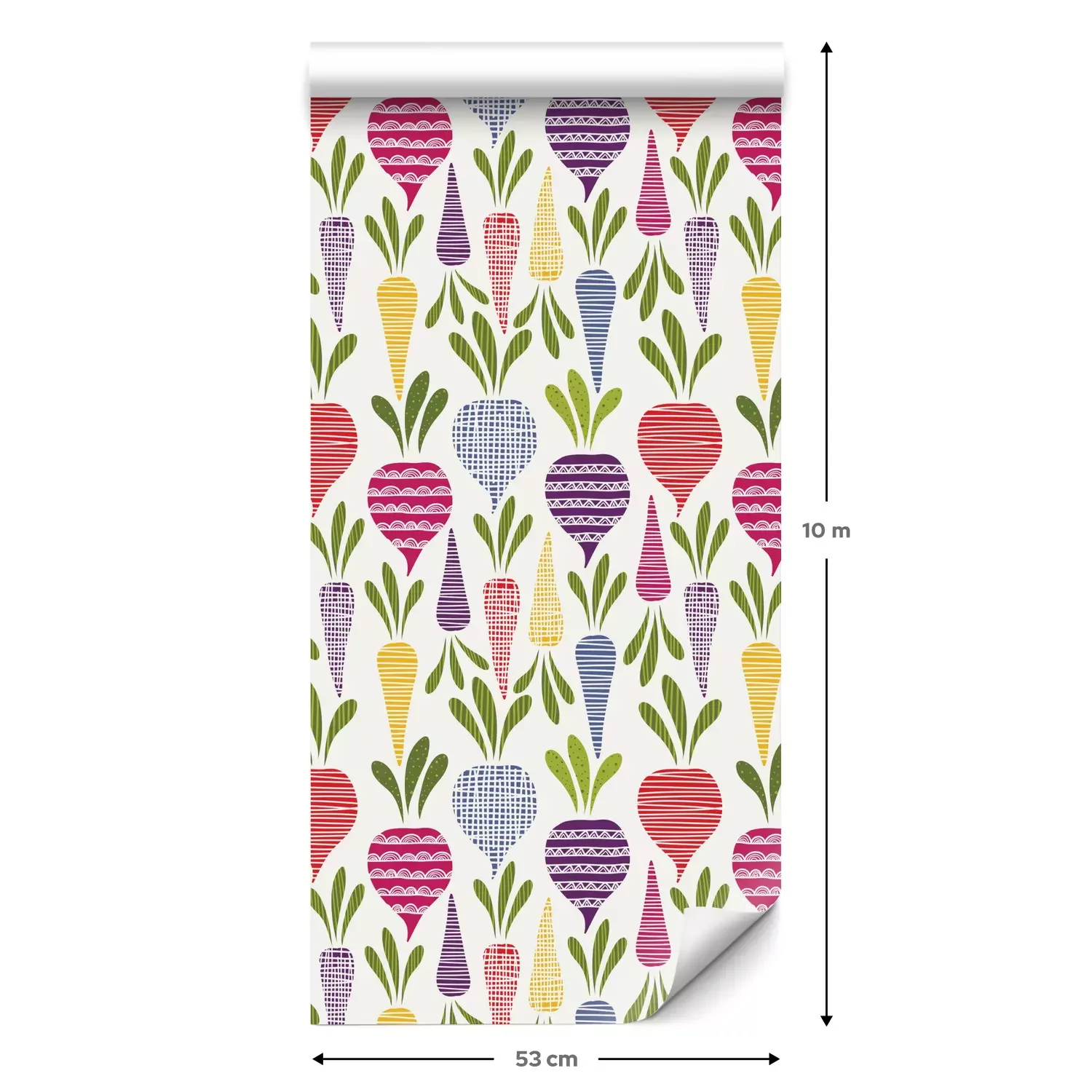 Eine Standard-Tapetenrolle hat die Maße 0,53 m x 10 m und deckt eine Wandfläche von etwa 5 m² ab.