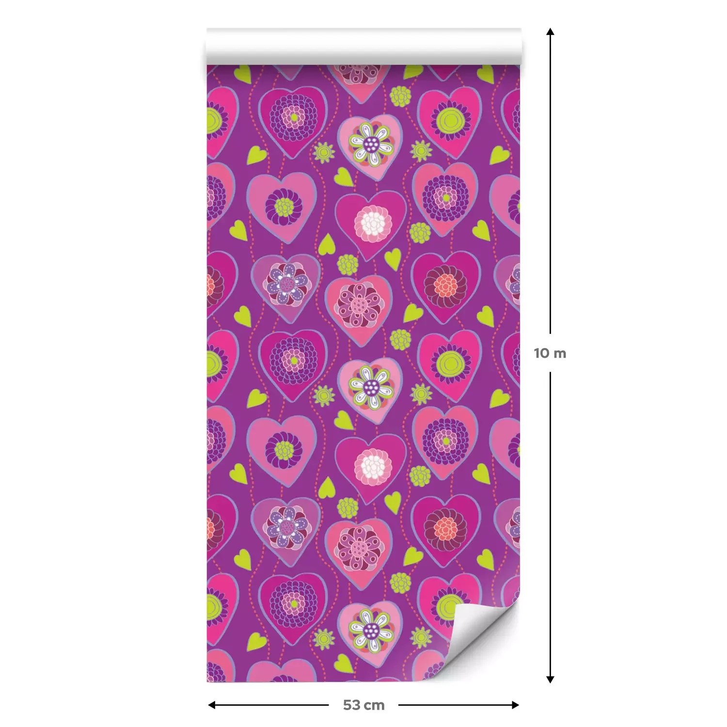 Eine Standard-Tapetenrolle hat die Maße 0,53 m x 10 m und deckt eine Wandfläche von etwa 5 m² ab.