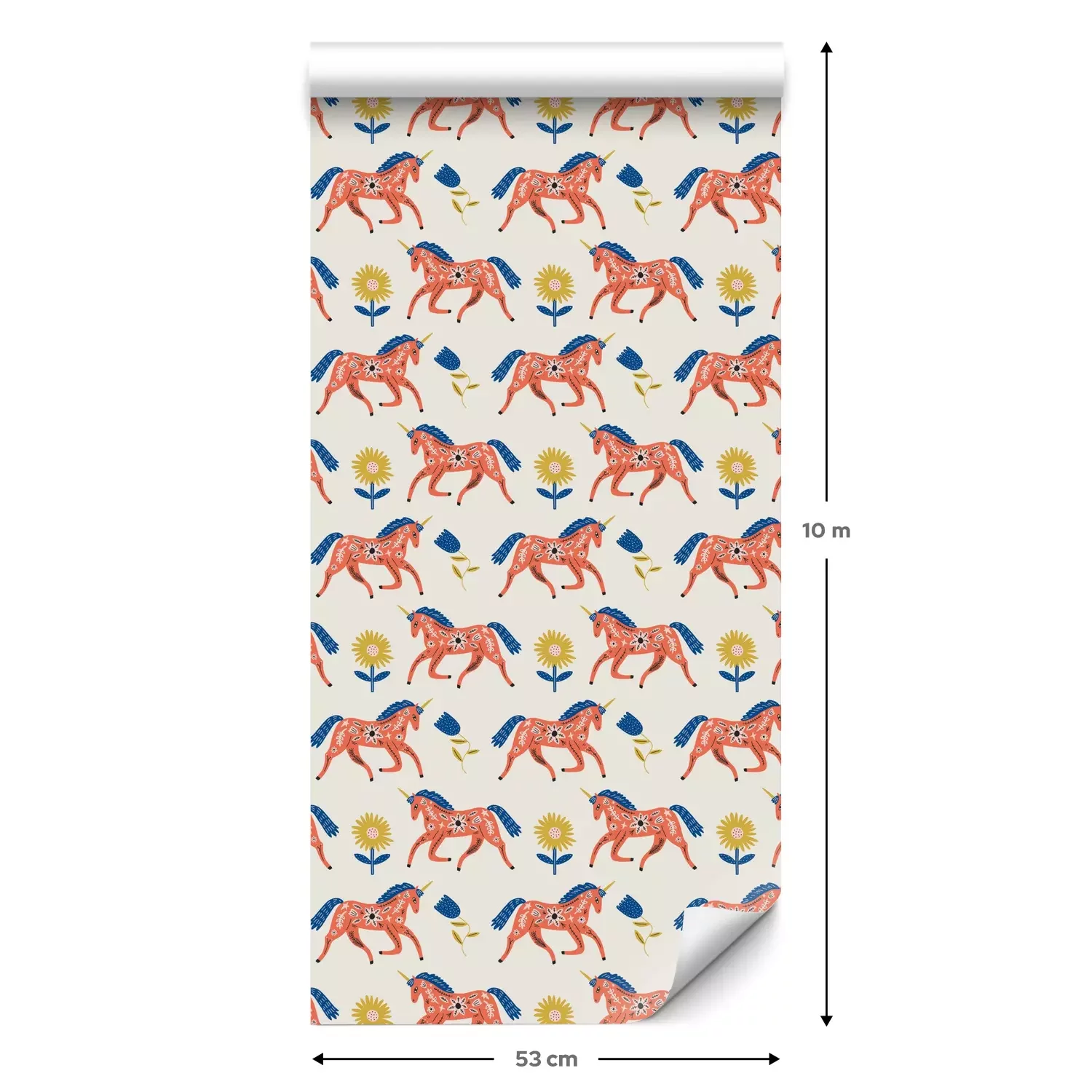 Eine Standard-Tapetenrolle hat die Maße 0,53 m x 10 m und deckt eine Wandfläche von etwa 5 m² ab.