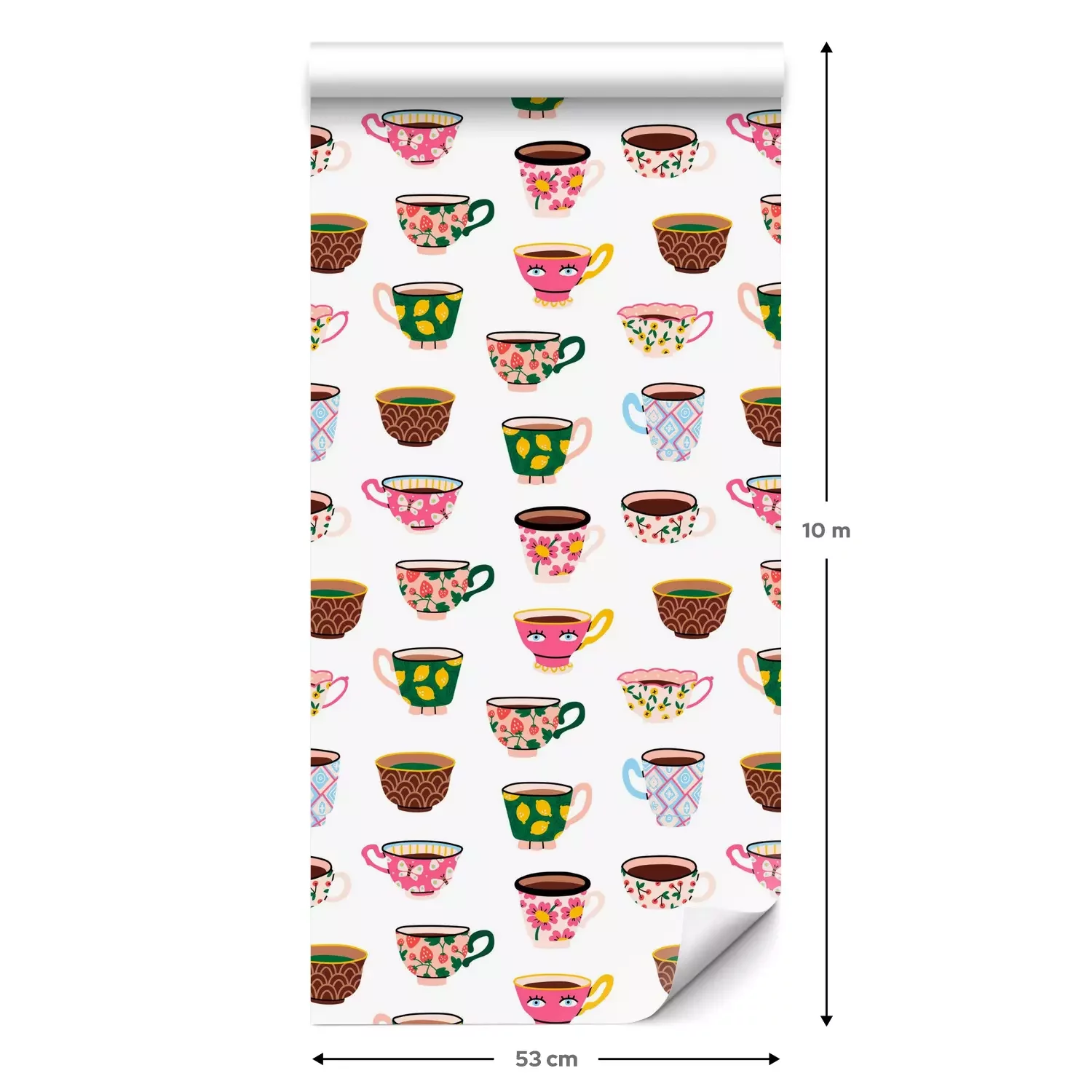 Eine Standard-Tapetenrolle hat die Maße 0,53 m x 10 m und deckt eine Wandfläche von etwa 5 m² ab.