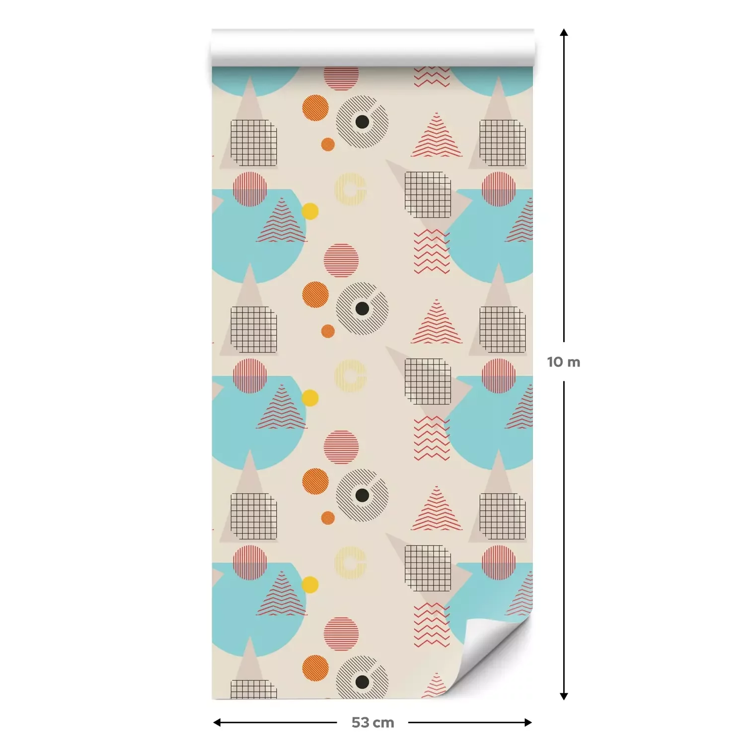 Eine Standard-Tapetenrolle hat die Maße 0,53 m x 10 m und deckt eine Wandfläche von etwa 5 m² ab.