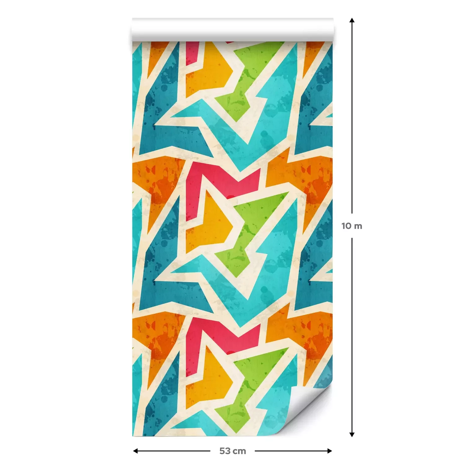 Eine Standard-Tapetenrolle hat die Maße 0,53 m x 10 m und deckt eine Wandfläche von etwa 5 m² ab.