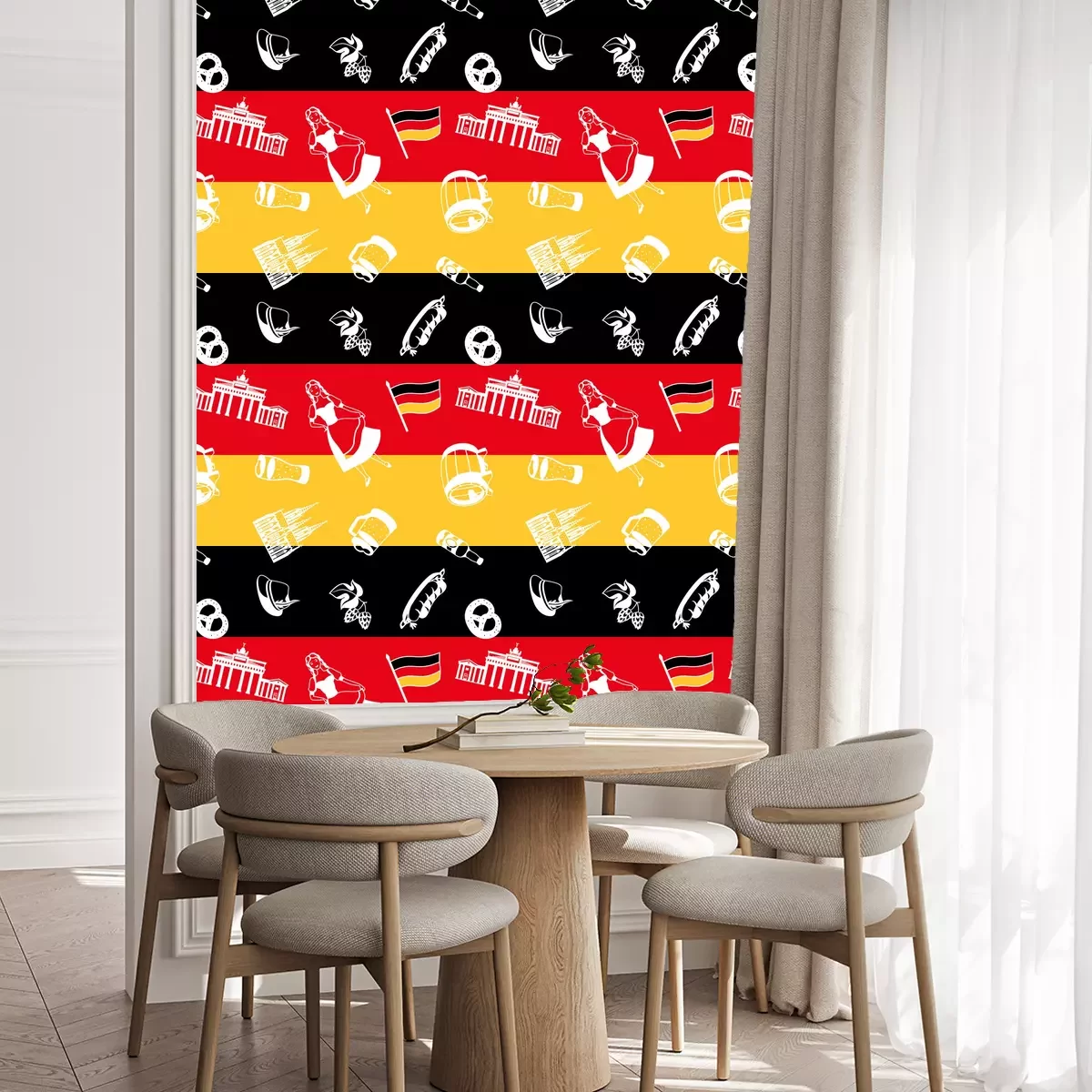 Die Tapete zeichnet sich durch ein sich wiederholendes Muster aus, das ein rhythmisches Design erzeugt. Als Trägermaterial wird hier Vlies verwendet. Sie wird in Rollen mit den standardisierten Maßen 10 m x 53 cm verkauft. Eine Fototapete ist eine spezielle Art von Tapete, auf der ein Foto oder ein realistisches Bild (z.B. eine Landschaft oder eine Stadtansicht) großflächig aufgedruckt ist. Sie wird nicht in Standardrollen verkauft, sondern in Bahnen, die auf die Abmessungen einer bestimmten Wand zugeschnitten sind. So passt das gesamte Motiv perfekt darauf. Zudem können Sie das Material wählen, aus dem die Tapete hergestellt werden soll.