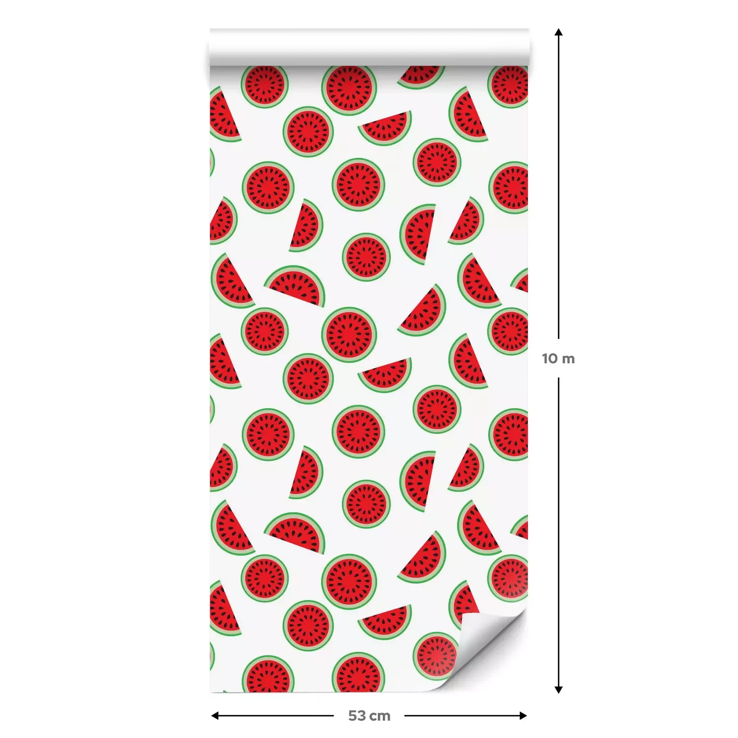 Eine Standard-Tapetenrolle hat die Maße 0,53 m x 10 m und deckt eine Wandfläche von etwa 5 m² ab.
