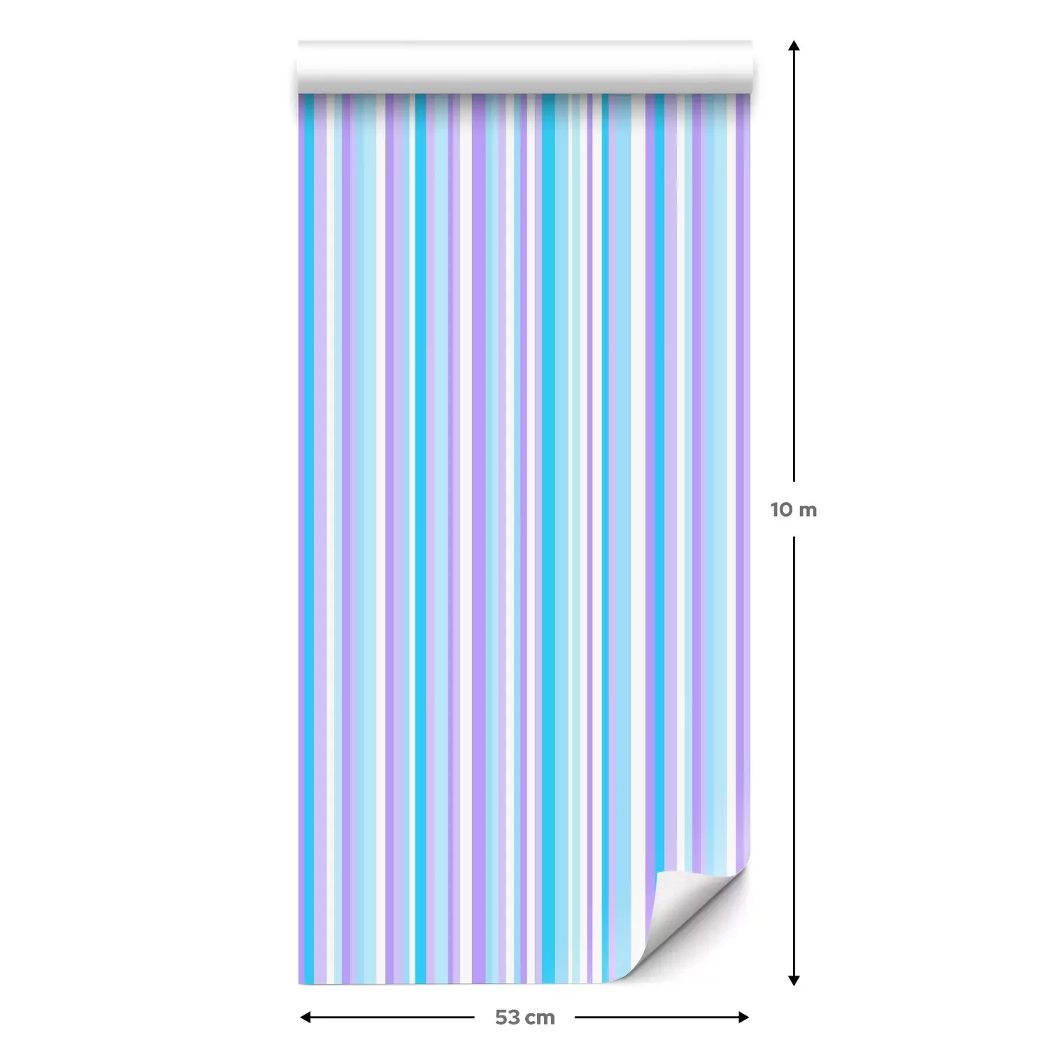 Eine Standard-Tapetenrolle hat die Maße 0,53 m x 10 m und deckt eine Wandfläche von etwa 5 m² ab.