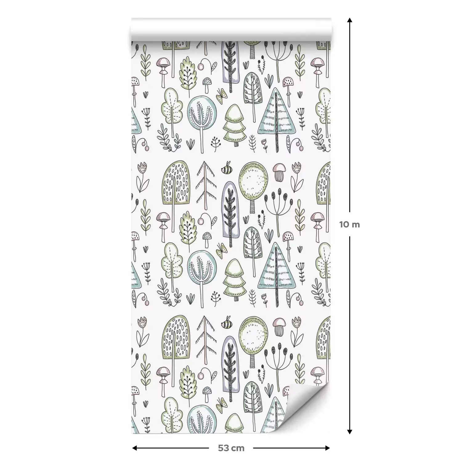 Eine Standard-Tapetenrolle hat die Maße 0,53 m x 10 m und deckt eine Wandfläche von etwa 5 m² ab.