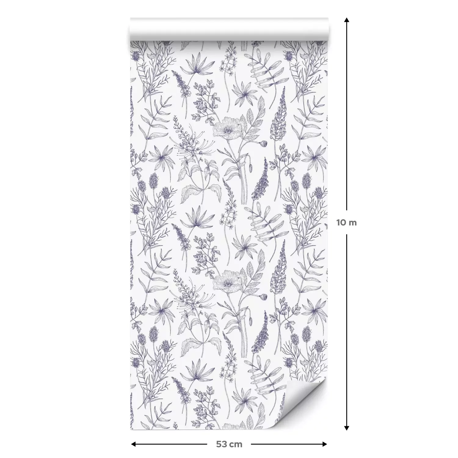 Eine Standard-Tapetenrolle hat die Maße 0,53 m x 10 m und deckt eine Wandfläche von etwa 5 m² ab.