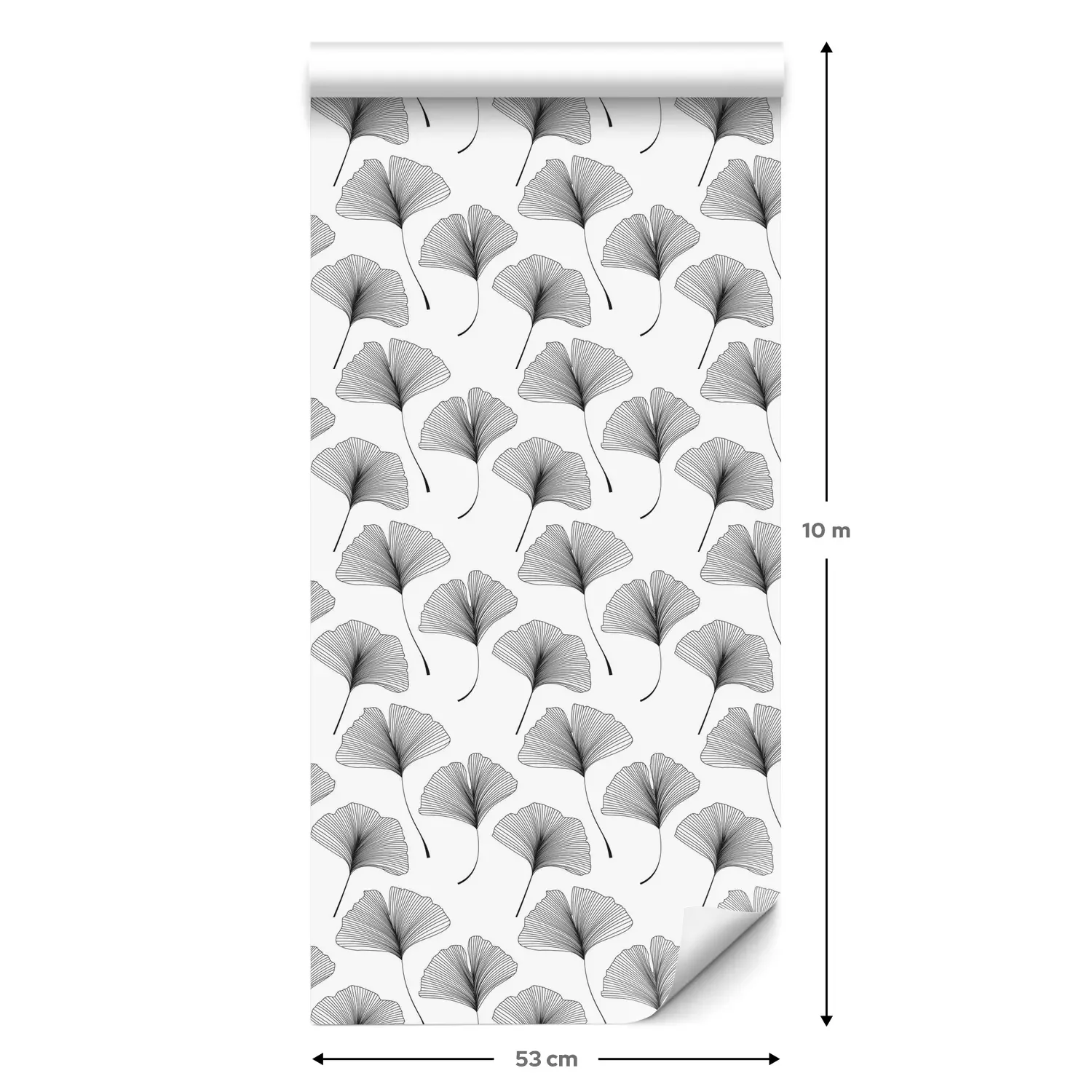 Eine Standard-Tapetenrolle hat die Maße 0,53 m x 10 m und deckt eine Wandfläche von etwa 5 m² ab.