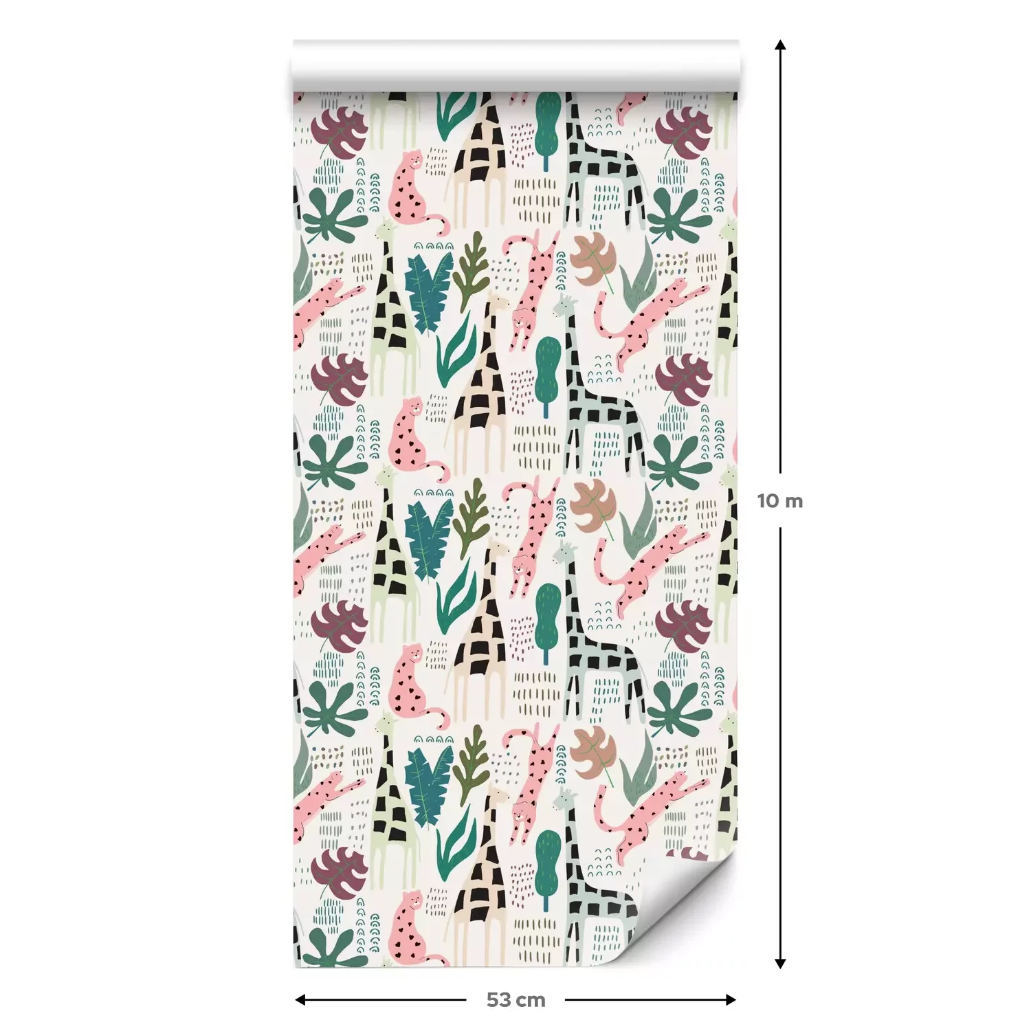 Eine Standard-Tapetenrolle hat die Maße 0,53 m x 10 m und deckt eine Wandfläche von etwa 5 m² ab.