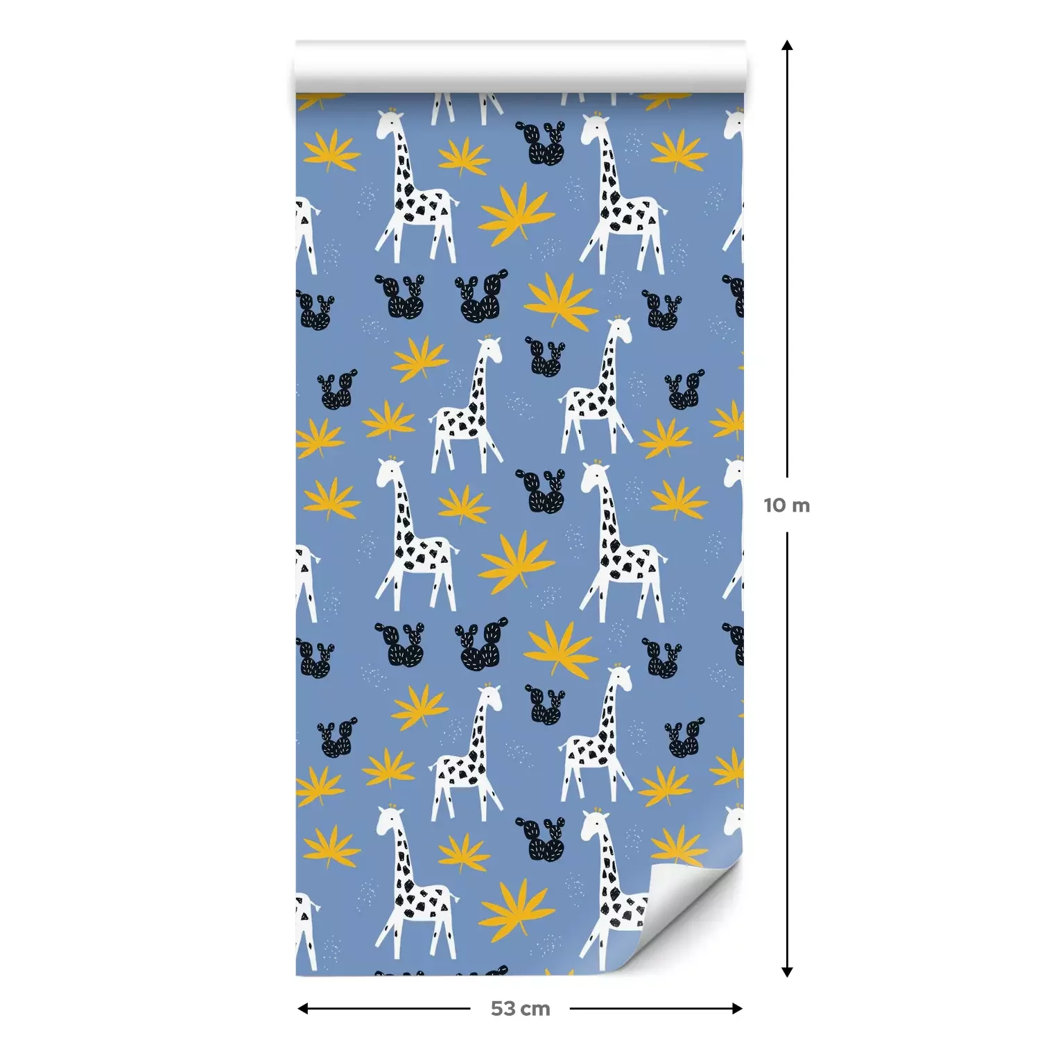 Eine Standard-Tapetenrolle hat die Maße 0,53 m x 10 m und deckt eine Wandfläche von etwa 5 m² ab.
