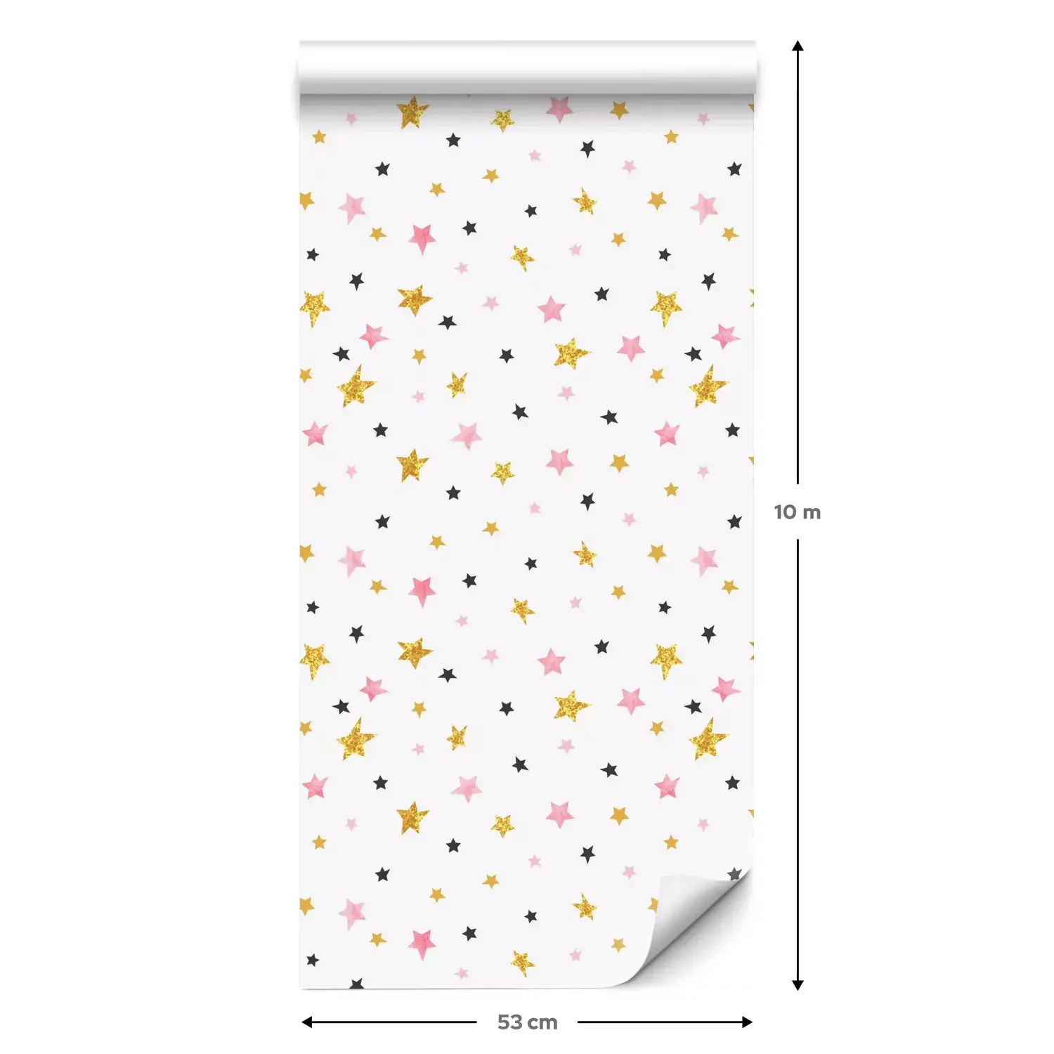 Eine Standard-Tapetenrolle hat die Maße 0,53 m x 10 m und deckt eine Wandfläche von etwa 5 m² ab.