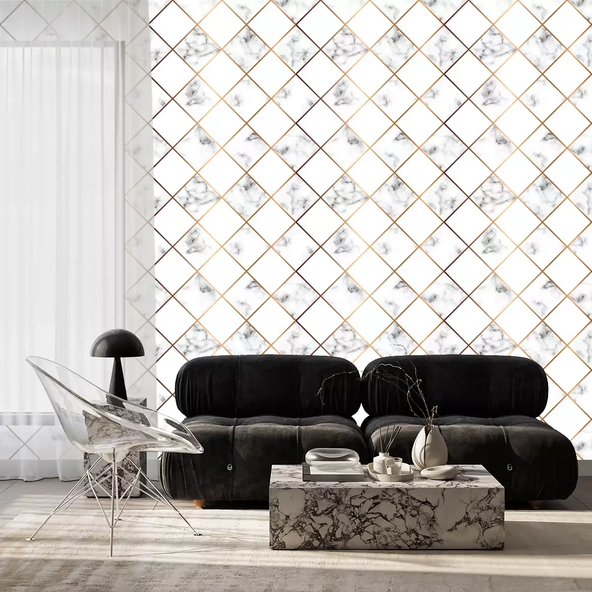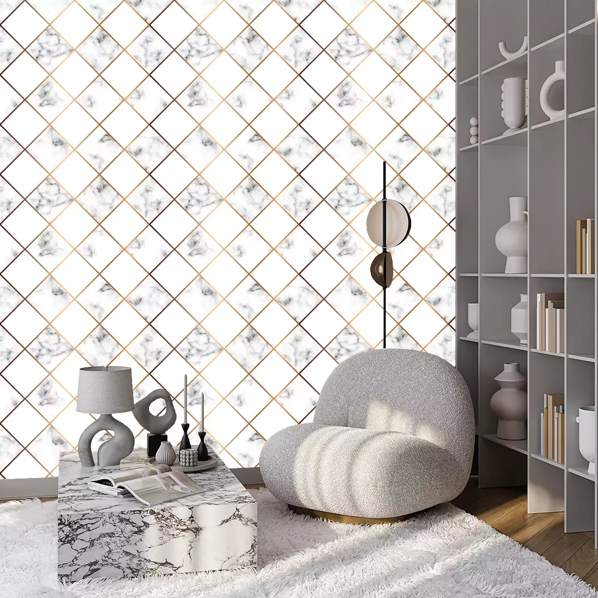 Monochromer Marmor mit goldenen LinienTapete