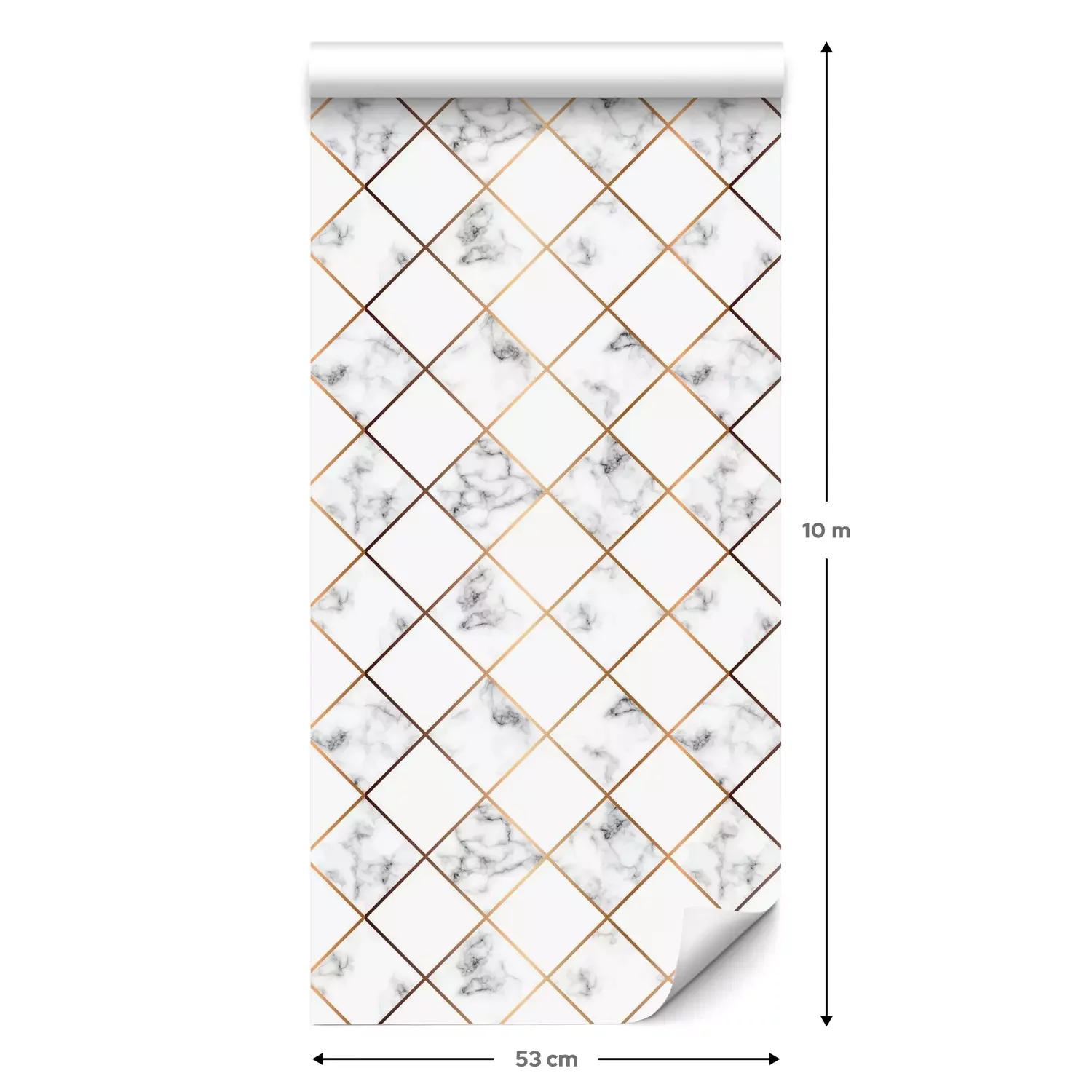 Eine Standard-Tapetenrolle hat die Maße 0,53 m x 10 m und deckt eine Wandfläche von etwa 5 m² ab.