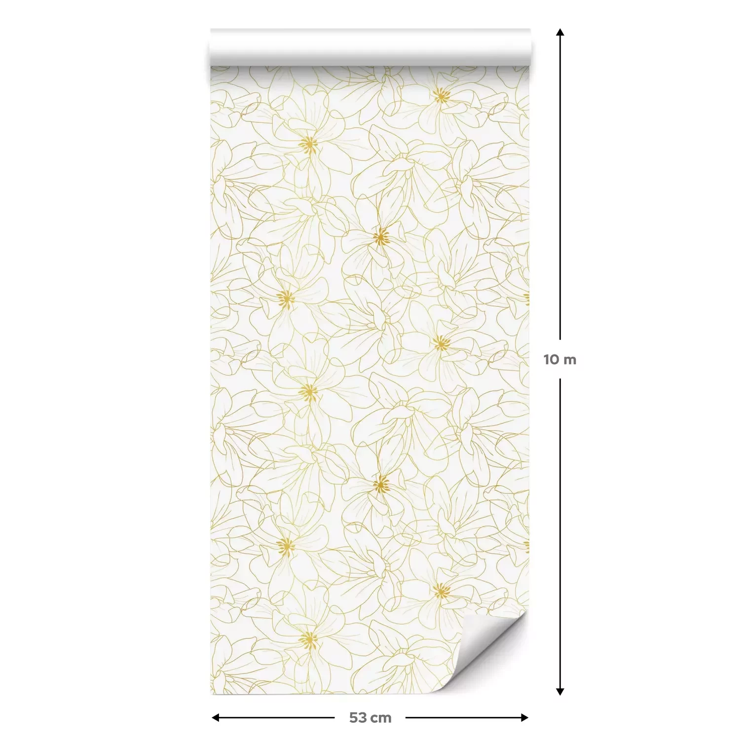 Eine Standard-Tapetenrolle hat die Maße 0,53 m x 10 m und deckt eine Wandfläche von etwa 5 m² ab.