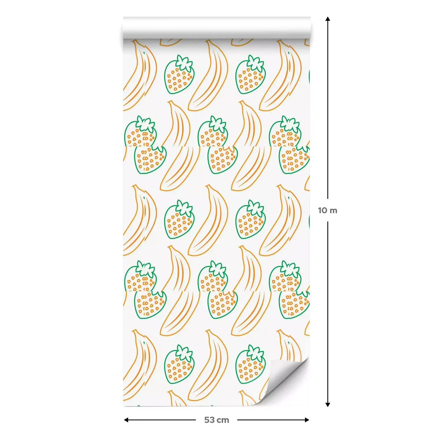 Eine Standard-Tapetenrolle hat die Maße 0,53 m x 10 m und deckt eine Wandfläche von etwa 5 m² ab.
