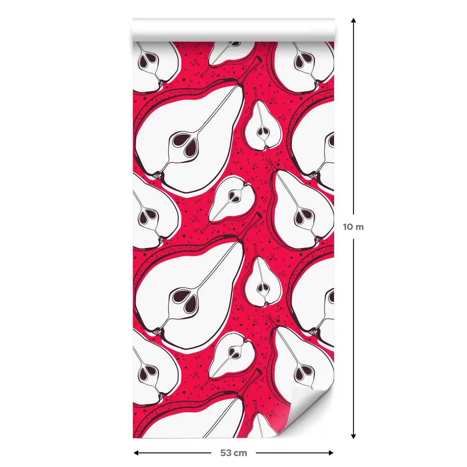 Eine Standard-Tapetenrolle hat die Maße 0,53 m x 10 m und deckt eine Wandfläche von etwa 5 m² ab.