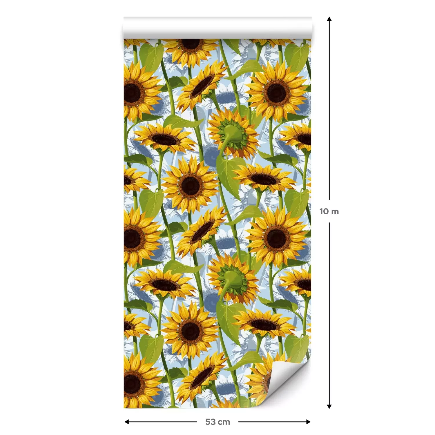 Eine Standard-Tapetenrolle hat die Maße 0,53 m x 10 m und deckt eine Wandfläche von etwa 5 m² ab.