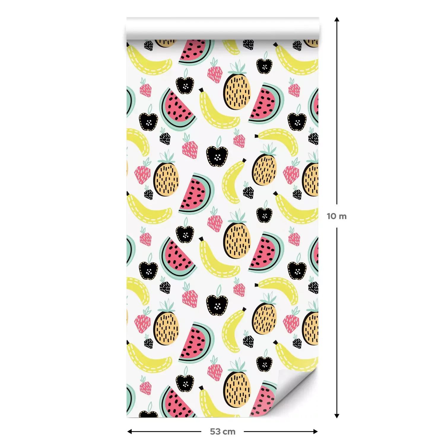 Eine Standard-Tapetenrolle hat die Maße 0,53 m x 10 m und deckt eine Wandfläche von etwa 5 m² ab.
