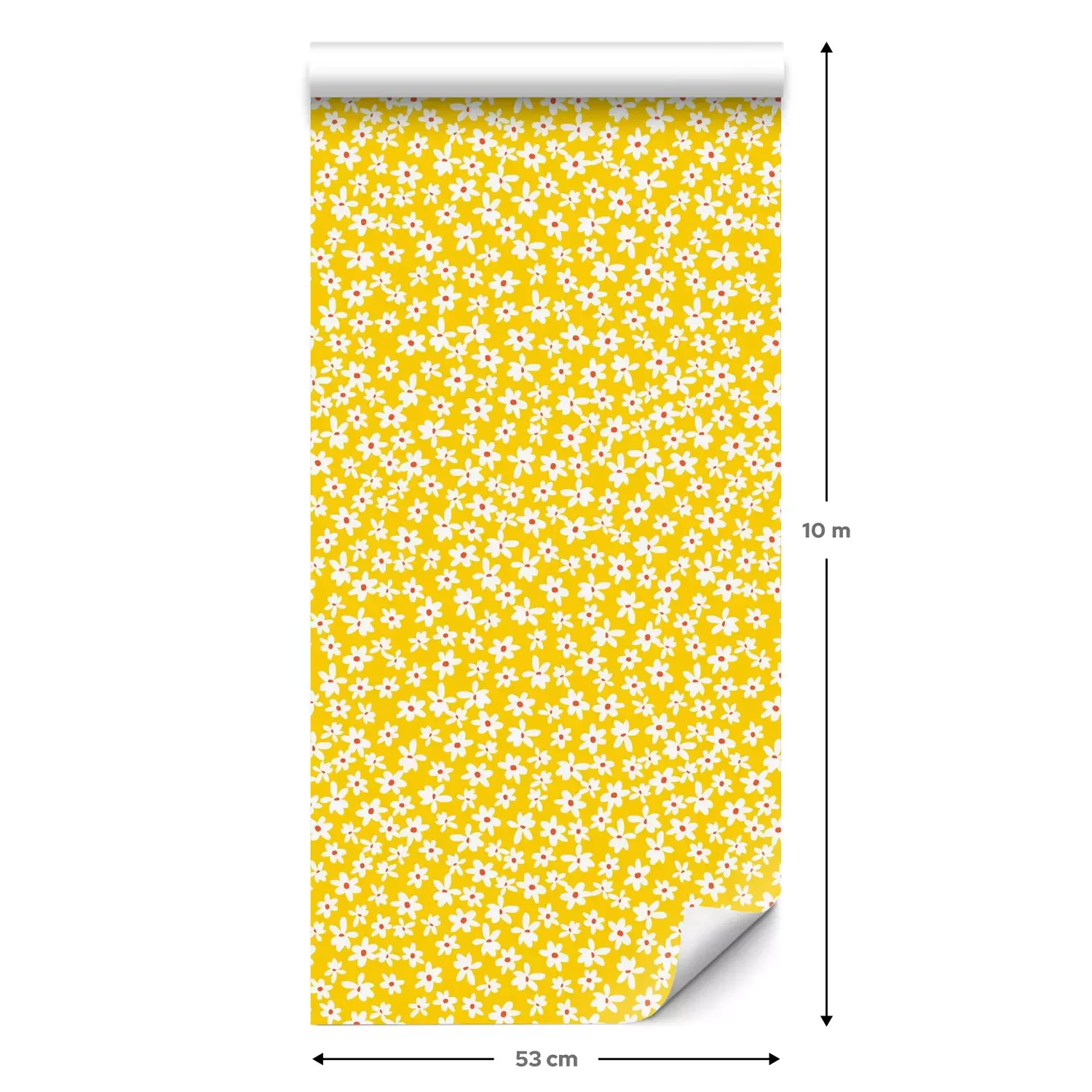 Eine Standard-Tapetenrolle hat die Maße 0,53 m x 10 m und deckt eine Wandfläche von etwa 5 m² ab.