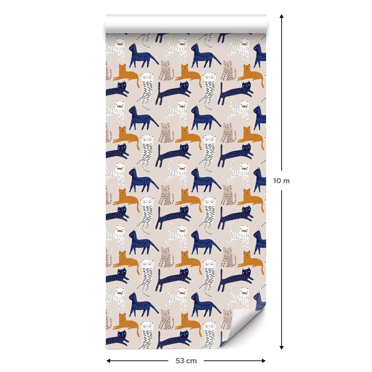 Eine Standard-Tapetenrolle hat die Maße 0,53 m x 10 m und deckt eine Wandfläche von etwa 5 m² ab.